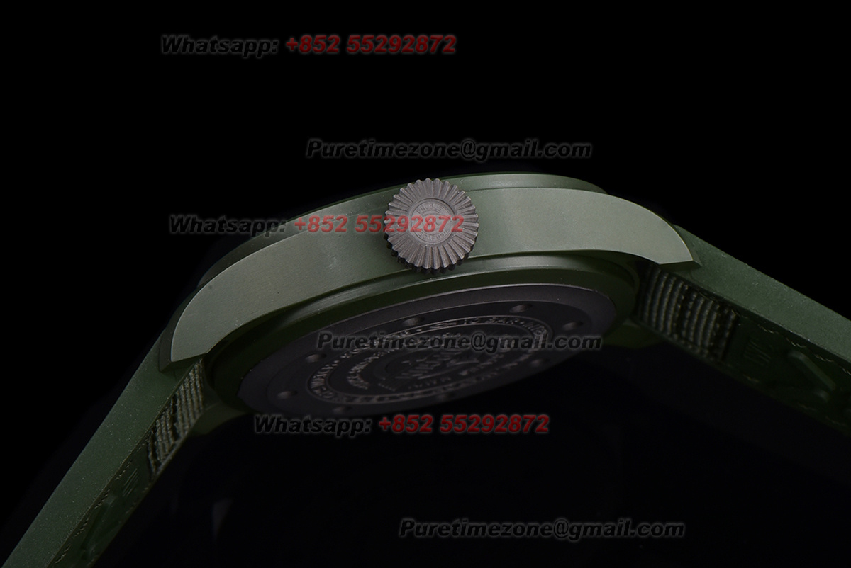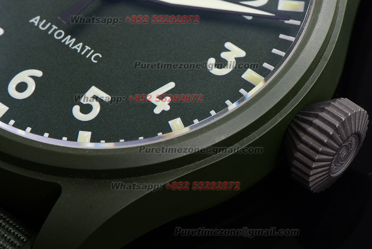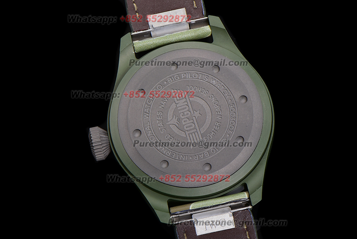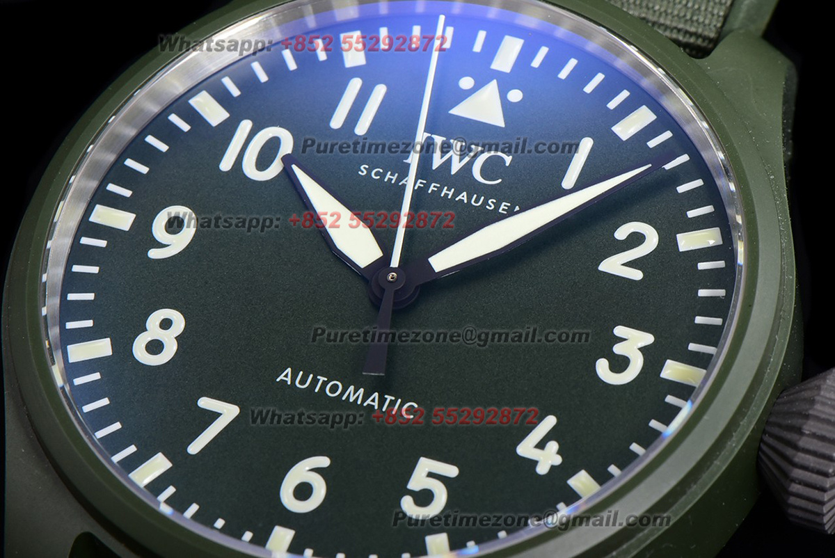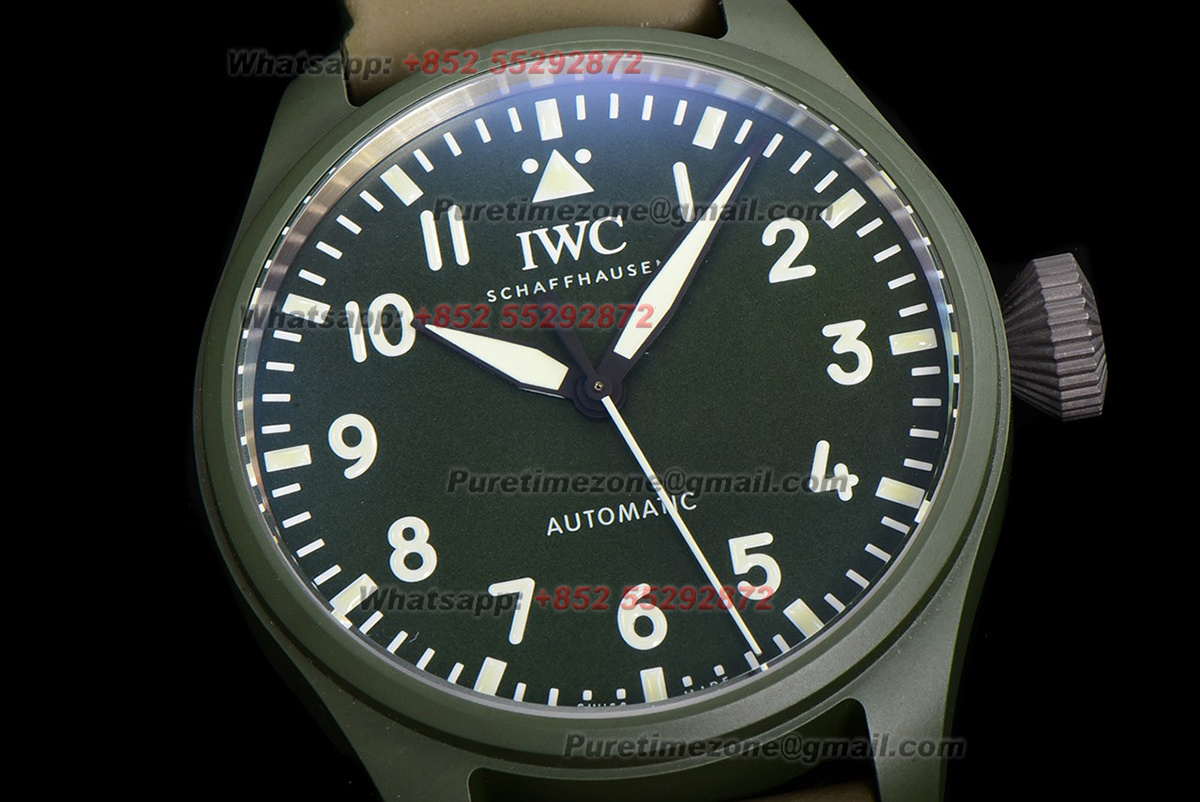 Pilot’s Automatic Top Gun Ceramic& Titanium IW326902 Mens Watch Super Clone TWF 43mm Green Dial Camouflage Leather Strap M9015
