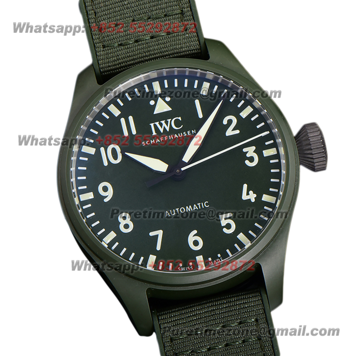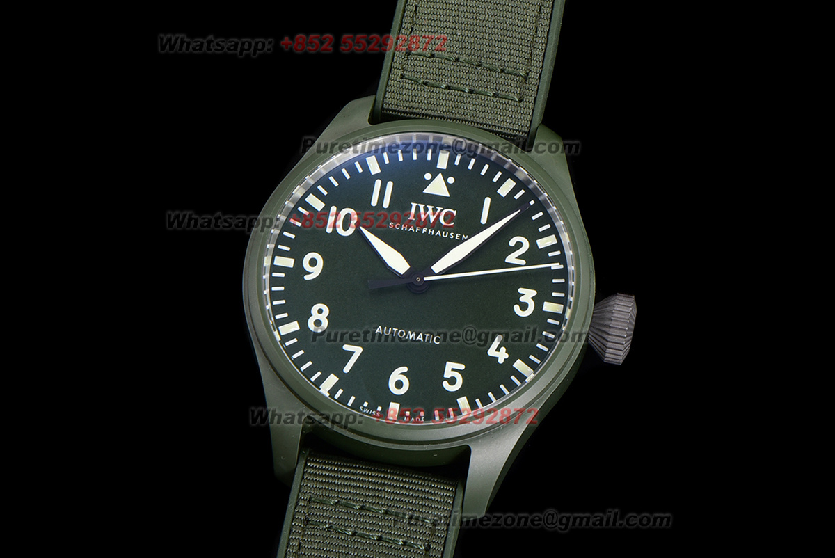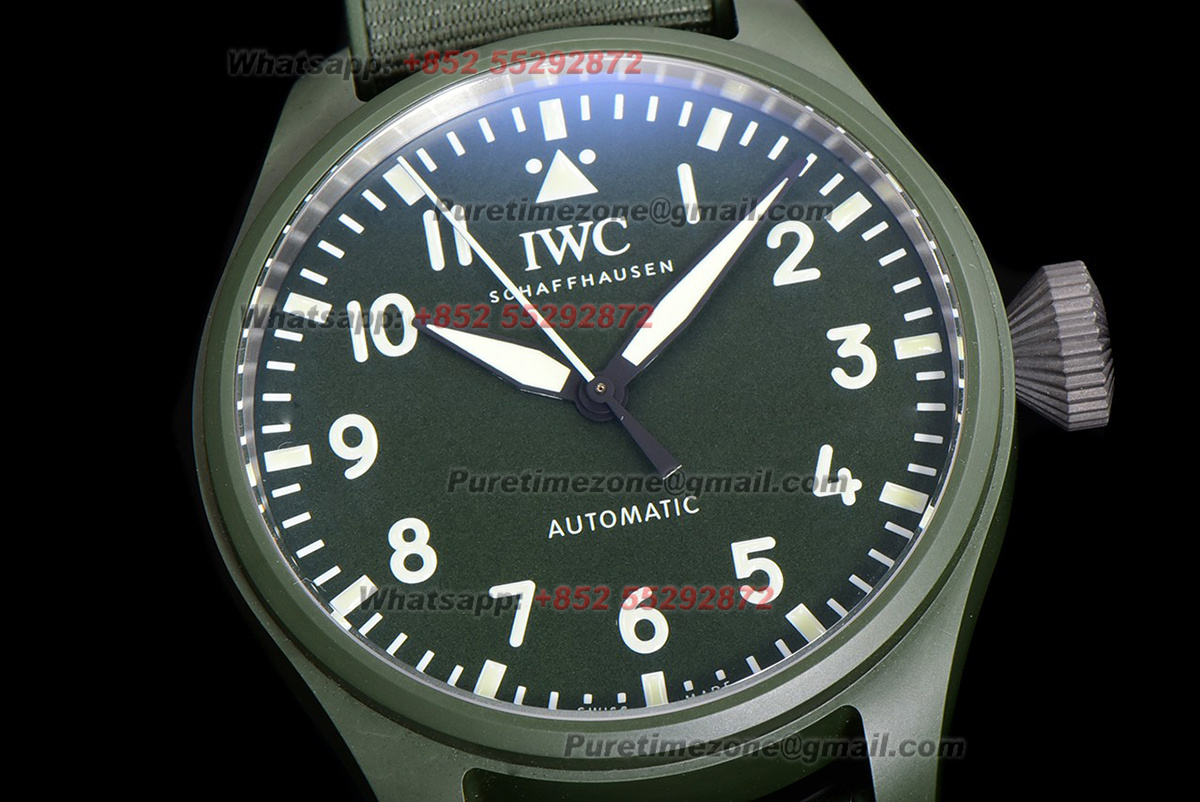 Pilot’s Automatic Top Gun Ceramic& Titanium IW326902 Mens Watch Super Clone TWF 43mm Green Dial Nylon Strap M9015