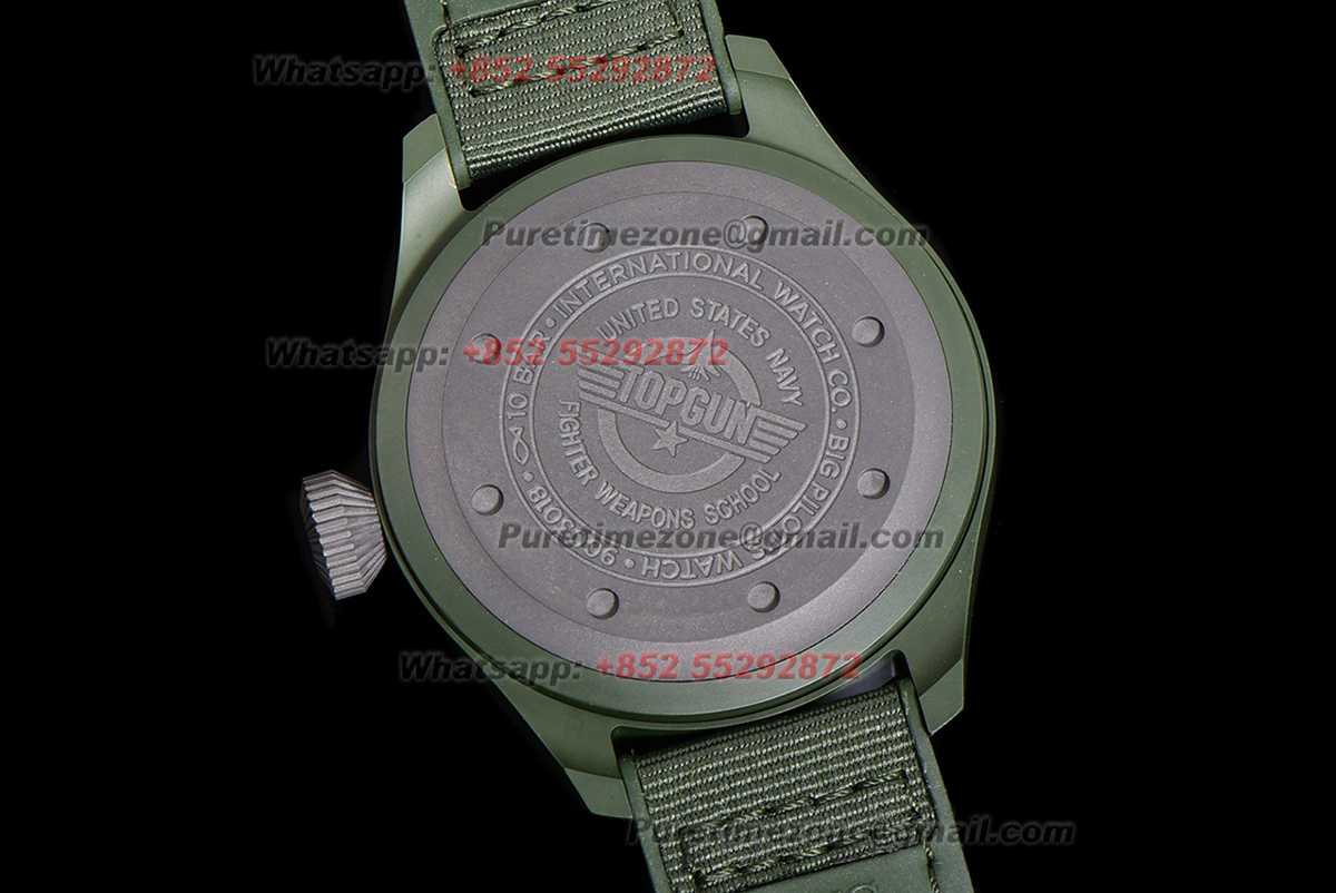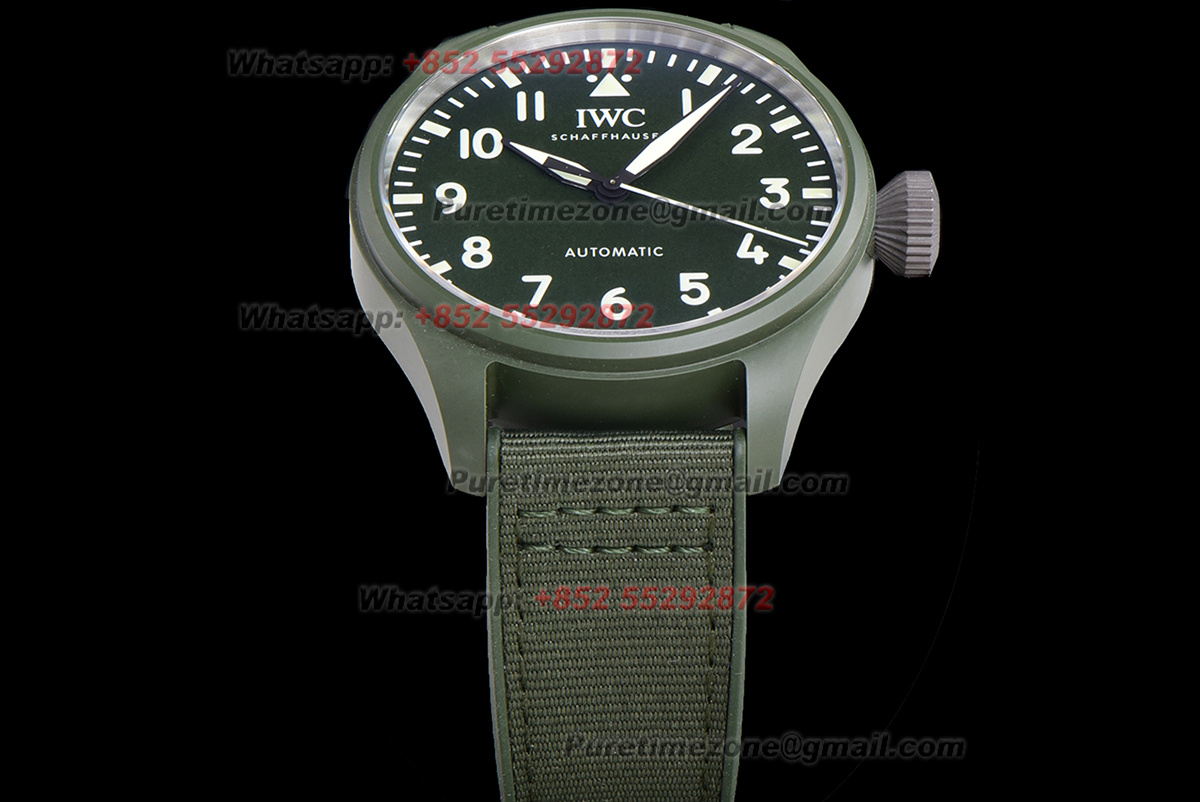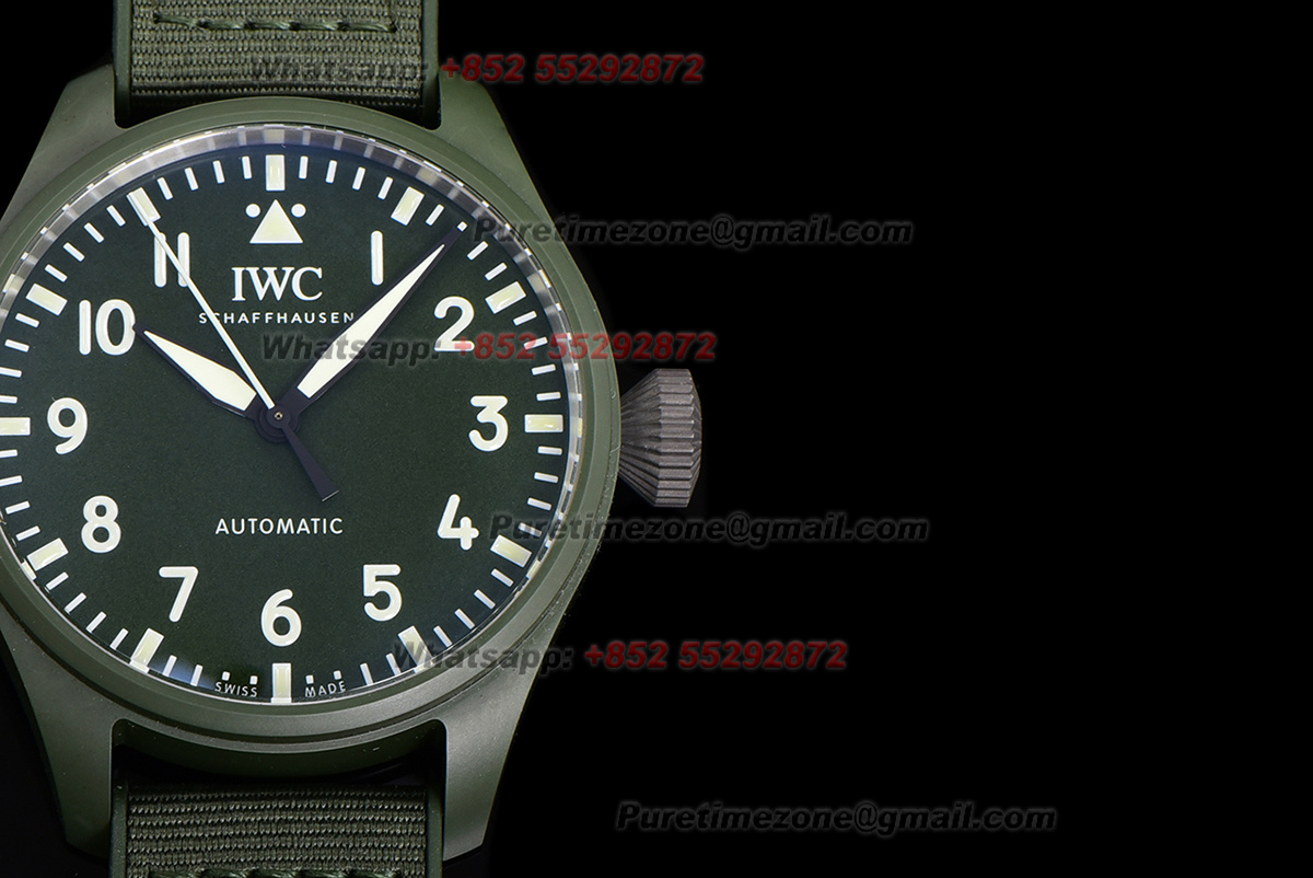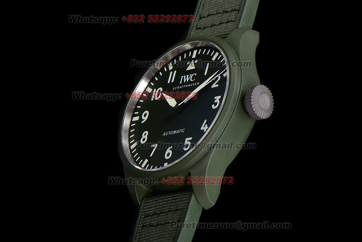 Pilot’s Automatic Top Gun Ceramic& Titanium IW326902 Mens Watch Super Clone TWF 43mm Green Dial Nylon Strap M9015