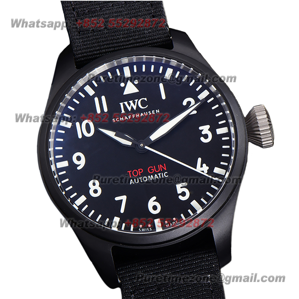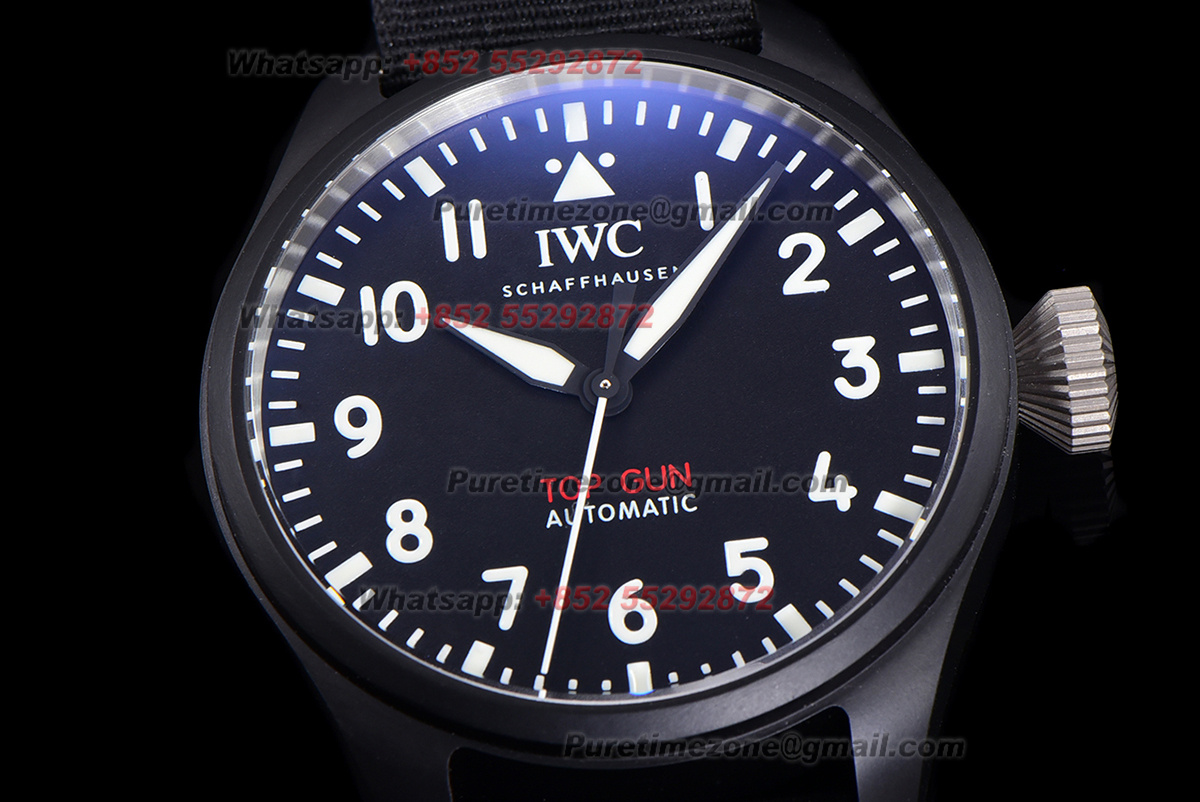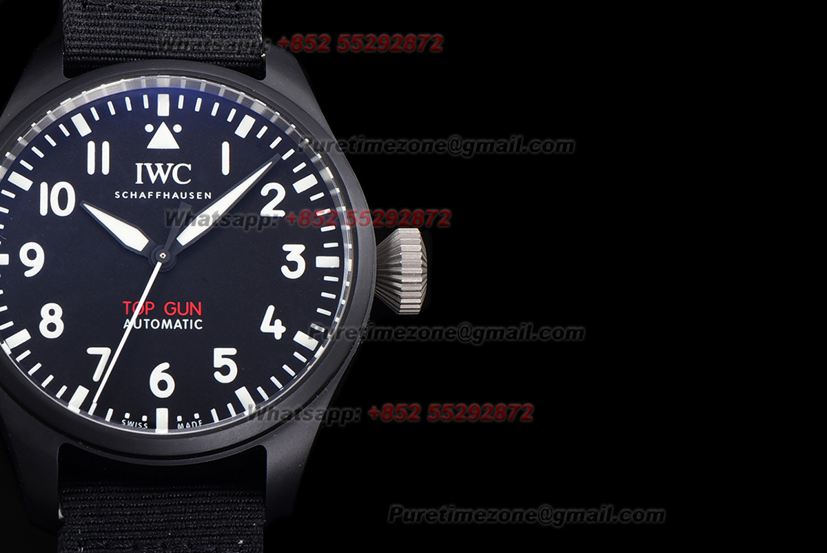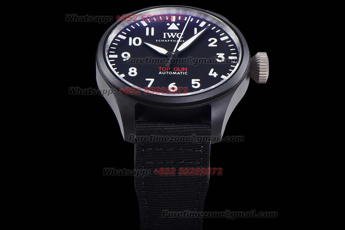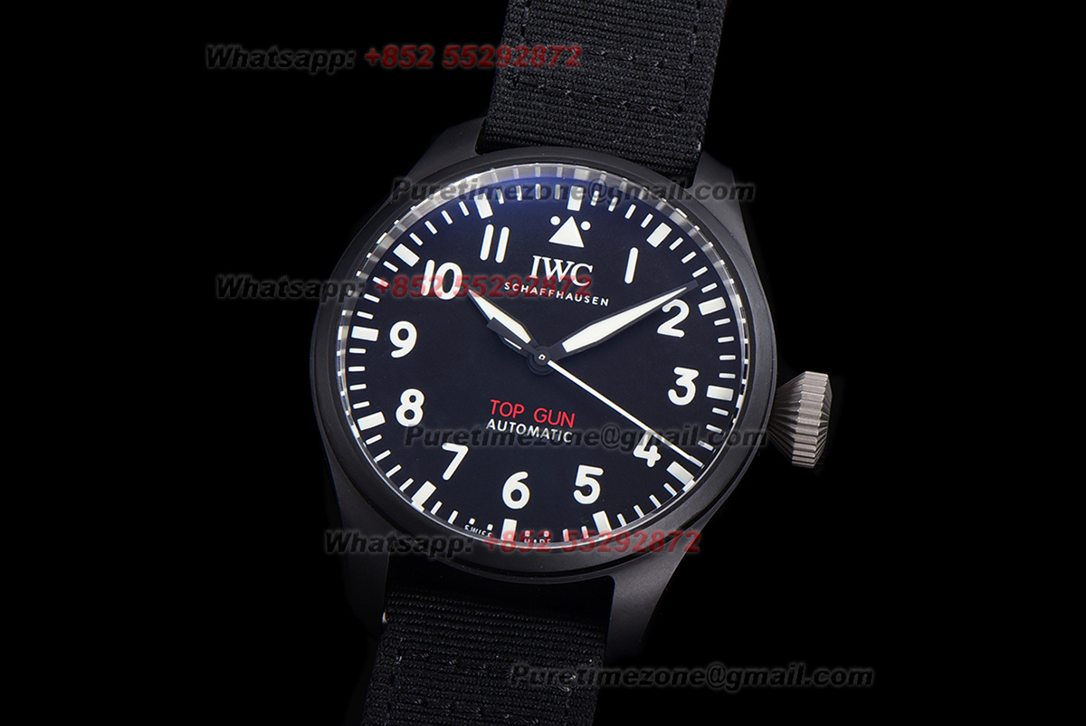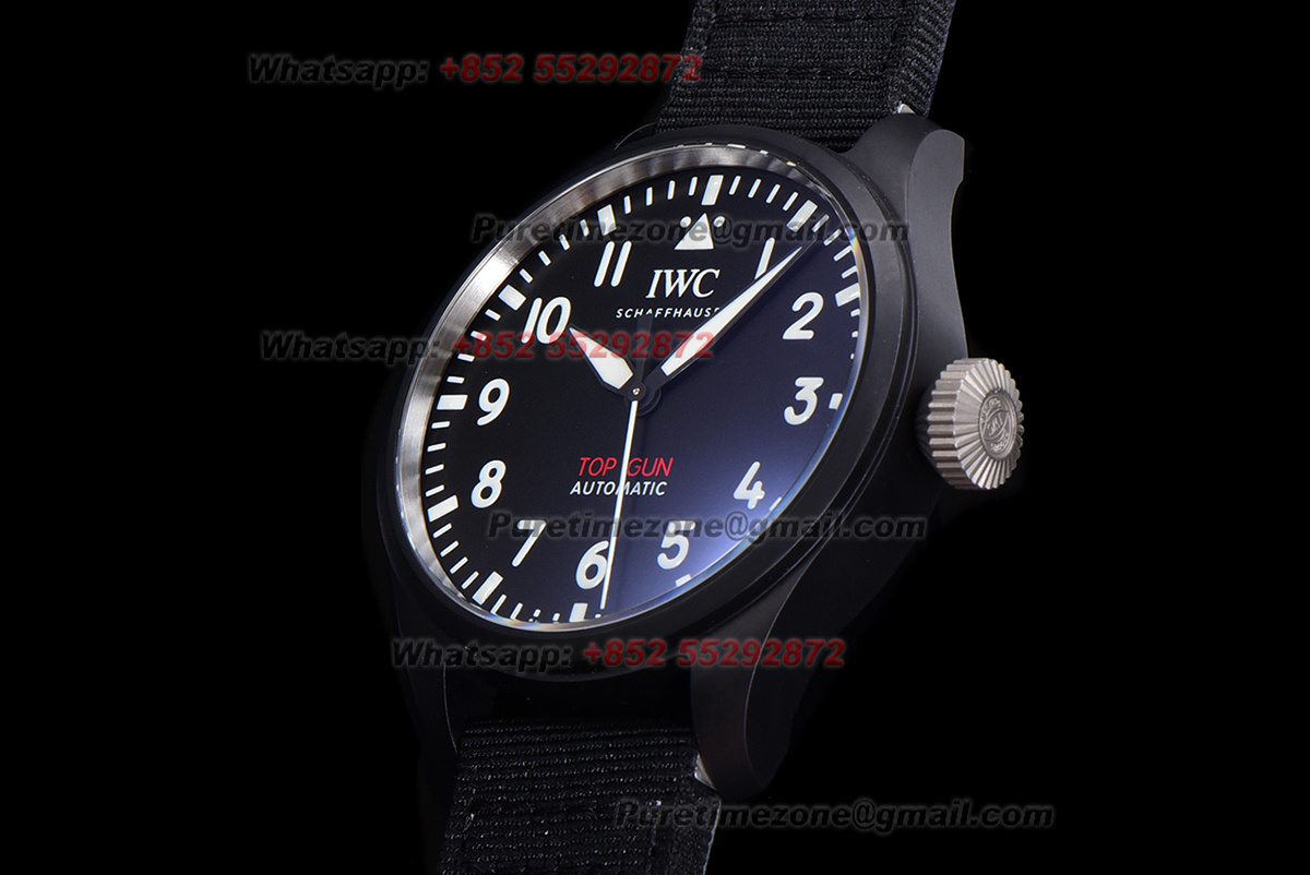 Pilot’s Automatic Top Gun Ceramic& Titanium IW326906 Mens Watch Super Clone TWF 43mm Black Dial Nylon Strap M9015