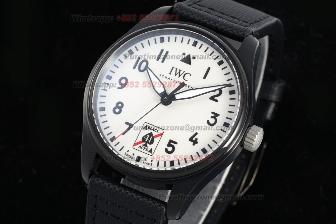 Home IWC Pilot Pilot’s Black Aces IW326905 Automatic Mens Watch Super Clone BLSF White Dial Black Leather Strap M9015