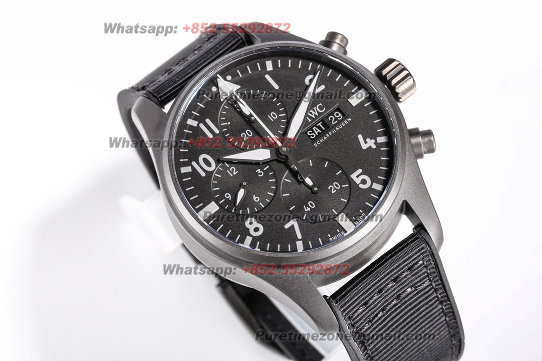 Pilot’s Chronograph 41 Top Gun Titanium IW388106 Automatic Mens Watch Super Clone TWF Black Dial Nylon Strap A69385