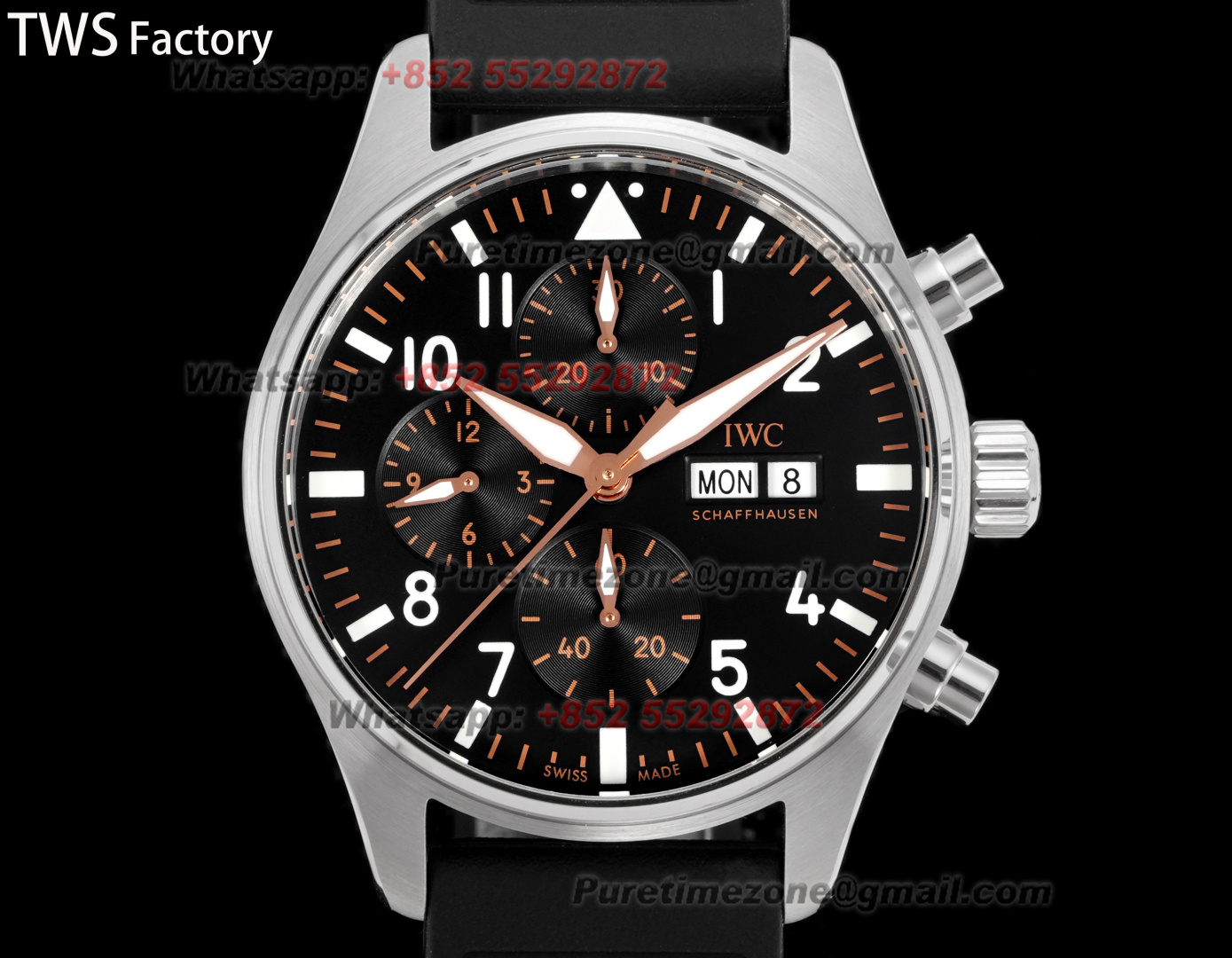 Pilot’s Chronograph “AMG” IW377909 Automatic Mens Watch Super Clone 43 Black Dial Black Rubber Strap A69385