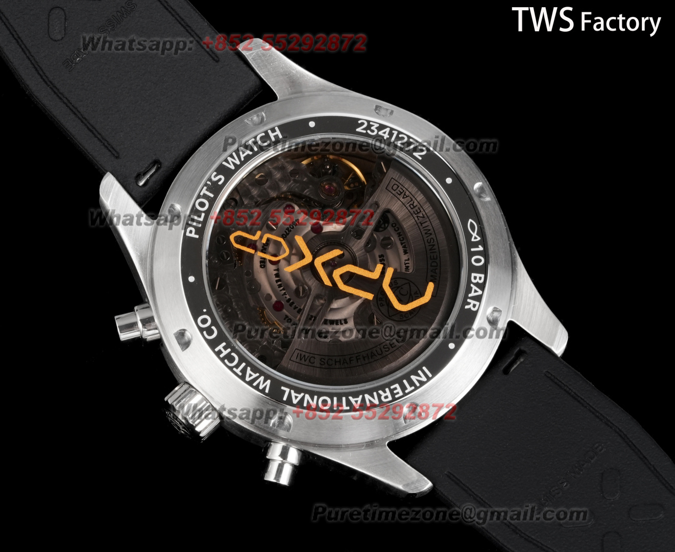 Home IWC Pilot Pilot’s Chronograph “AMG” IW377909 Automatic Mens Watch Super Clone 43 Black Dial Black Rubber Strap A69385
