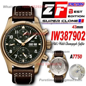 Pilot's Spitfire Chronograph IW387902 Bronze Automatic Mens Watch Super Clone ZF 43 Green Dial Brown Leather Strap A7750 $700.00 $600.00