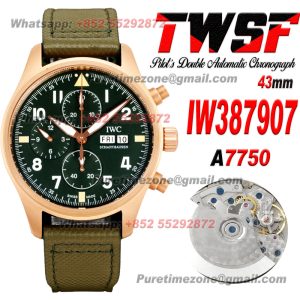 Pilot’s Spitfire Chronograph IW387907 Automatic Mens Watch Super Clone 43 RG Green Dial Green Nylon Strap A69355 $640.00 $540.00