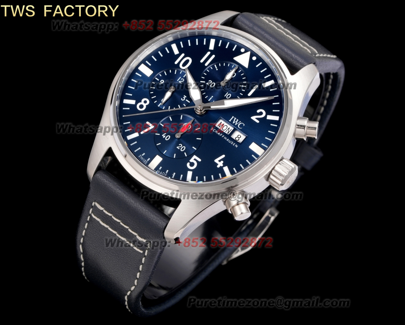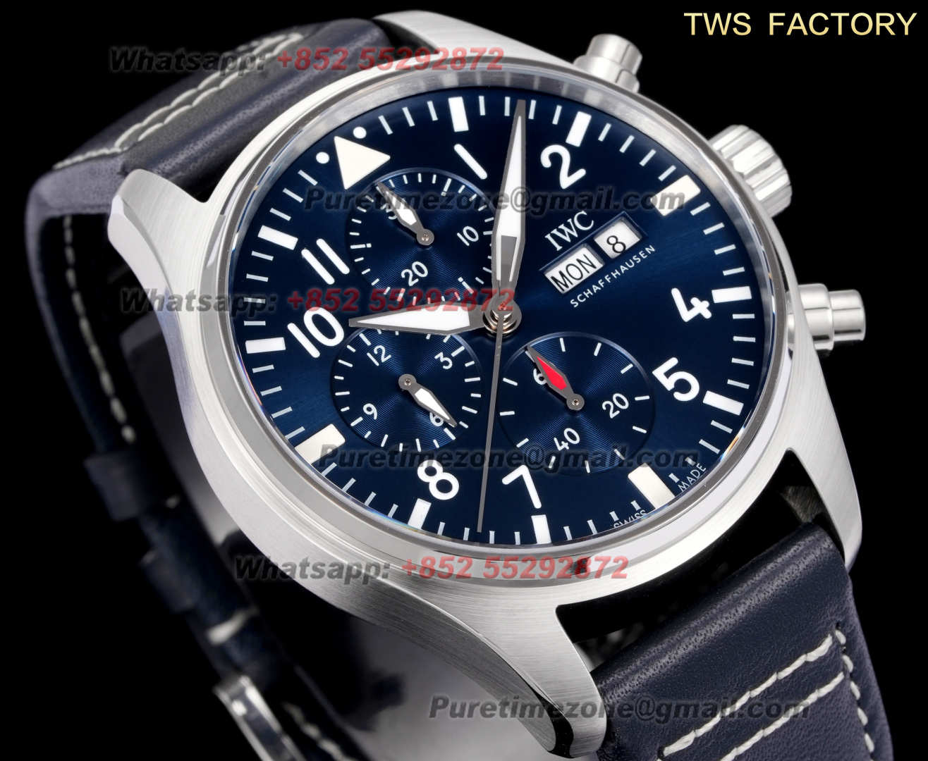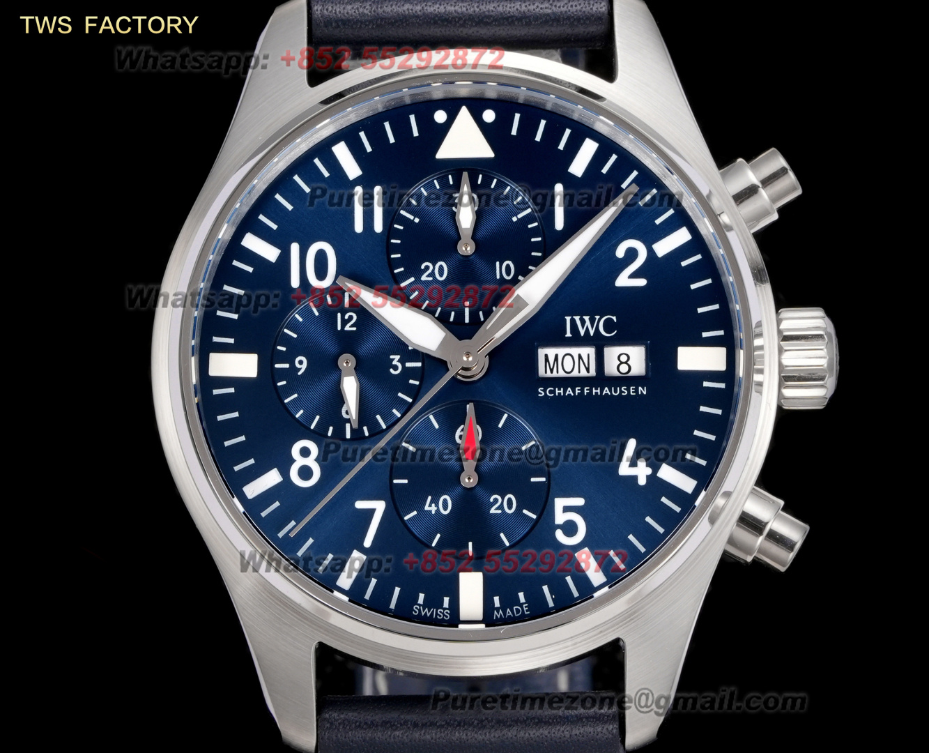 Pilot’s Chronograph IW388101 Automatic Mens Watch Super Clone TWSF 41mm Blue Dial Blue Leather Strap A69385