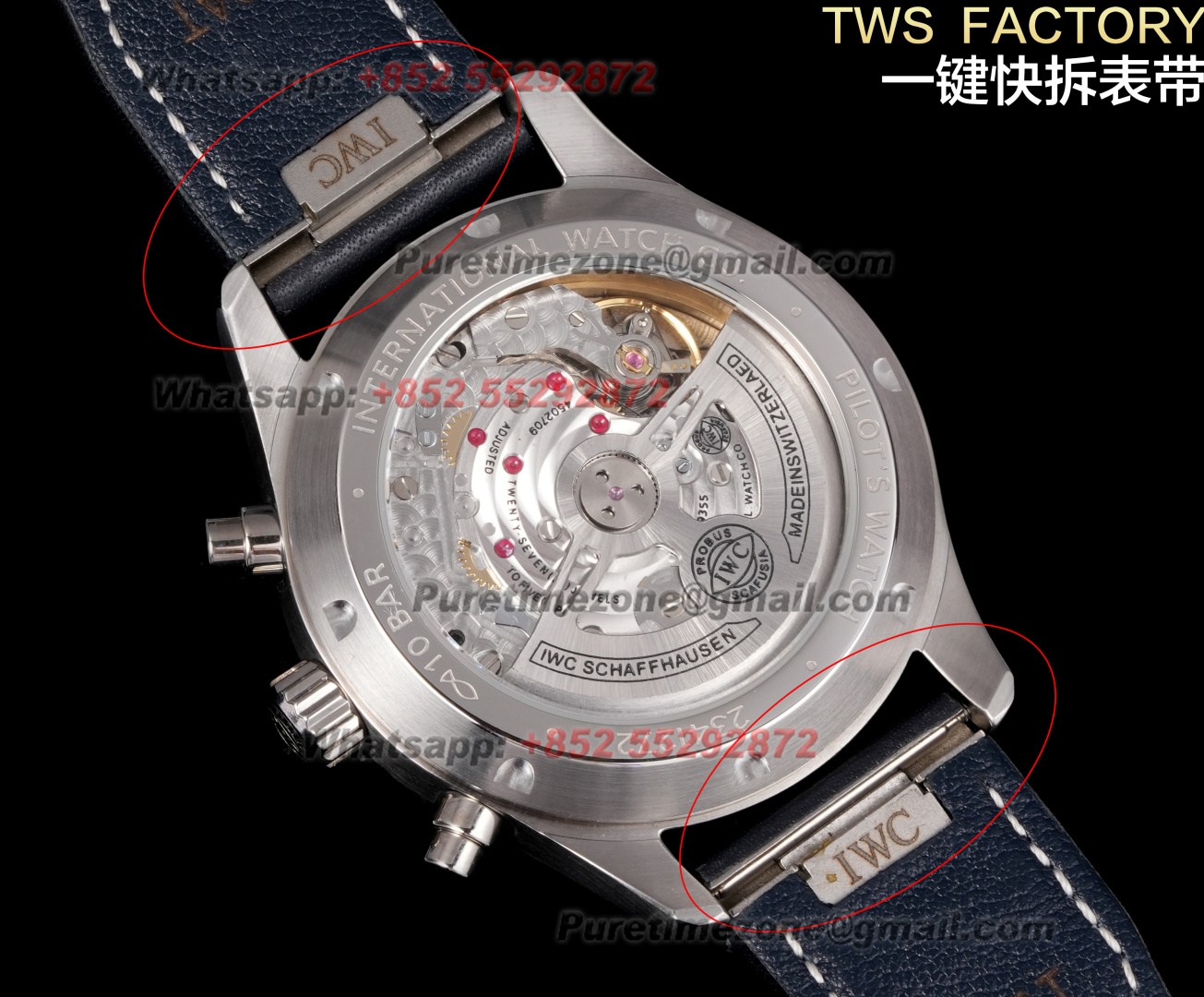 Decoration: Platinum plated movement plate and rotor which are made according to the genuine movement, the best looking IWC 69385 Movement Clone at the moment.