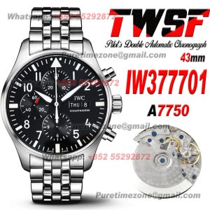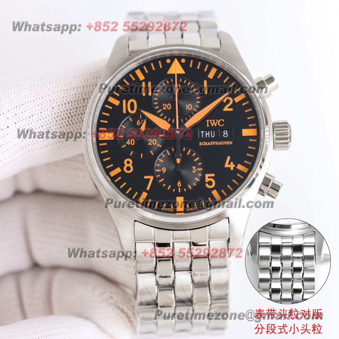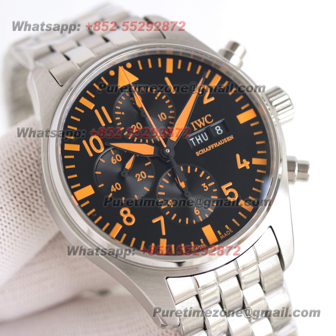 Pilot’s Chronograph IW377701 Automatic Mens Watch Super Clone TWSF 43mm Black Orange Dial SS Bracelet A7750