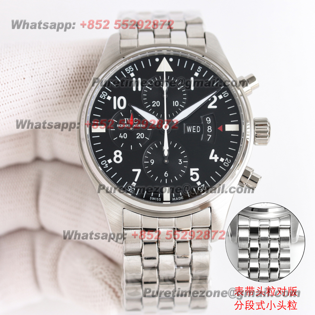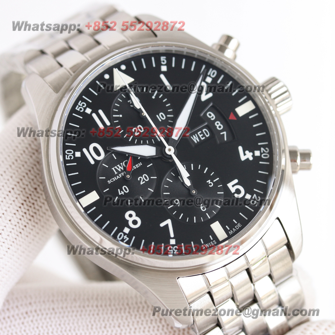 Pilot’s Chronograph IW377701 Automatic Mens Watch Super Clone TWSF 43mm Black White Dial SS Bracelet A7750