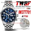 Pilot’s Chronograph IW377701 Automatic Mens Watch Super Clone TWSF 43mm Blue White Dial SS Bracelet A7750