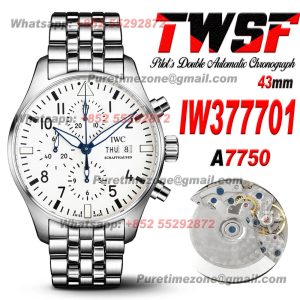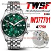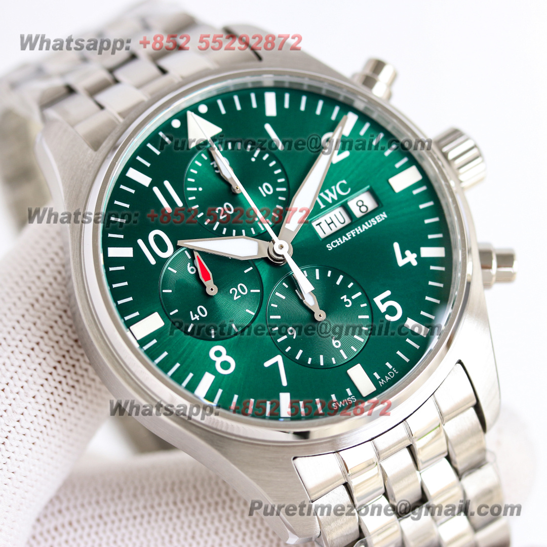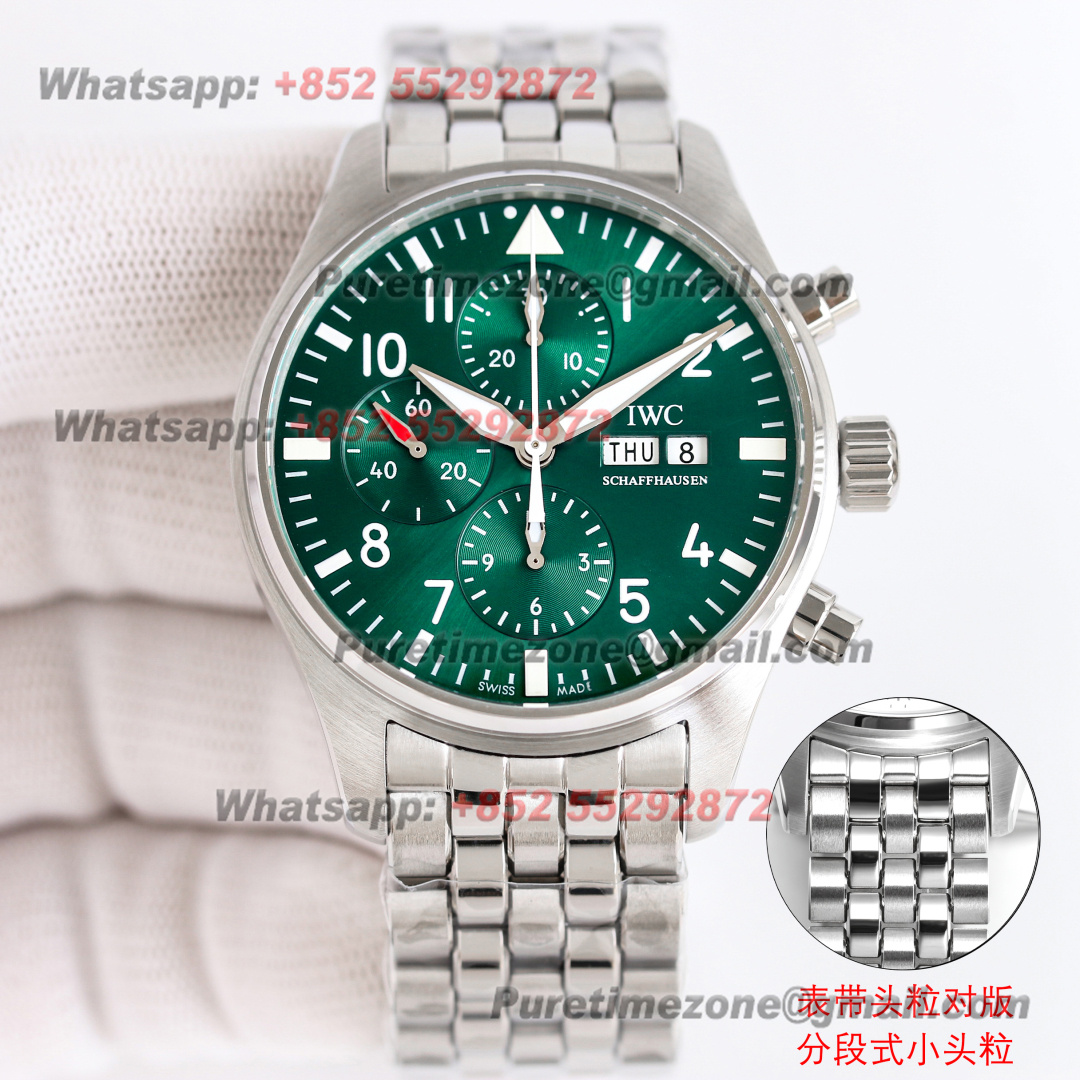 Pilot’s Chronograph IW377701 Automatic Mens Watch Super Clone TWSF 43mm Green White Dial SS Bracelet A7750