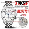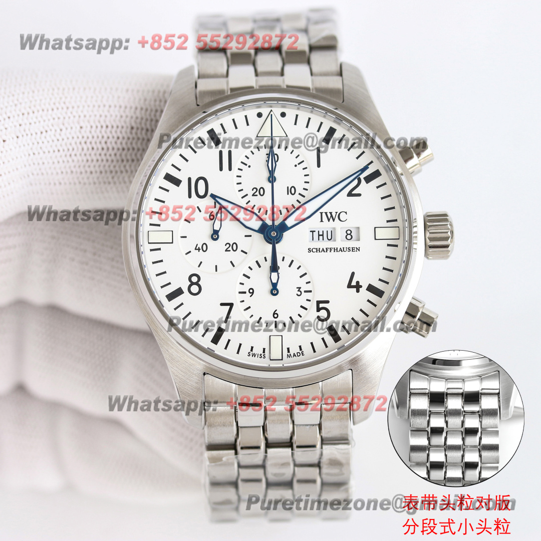 Pilot’s Chronograph IW377701 Automatic Mens Watch Super Clone TWSF 43mm White Dial SS Bracelet A7750