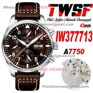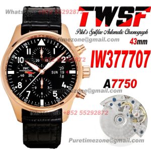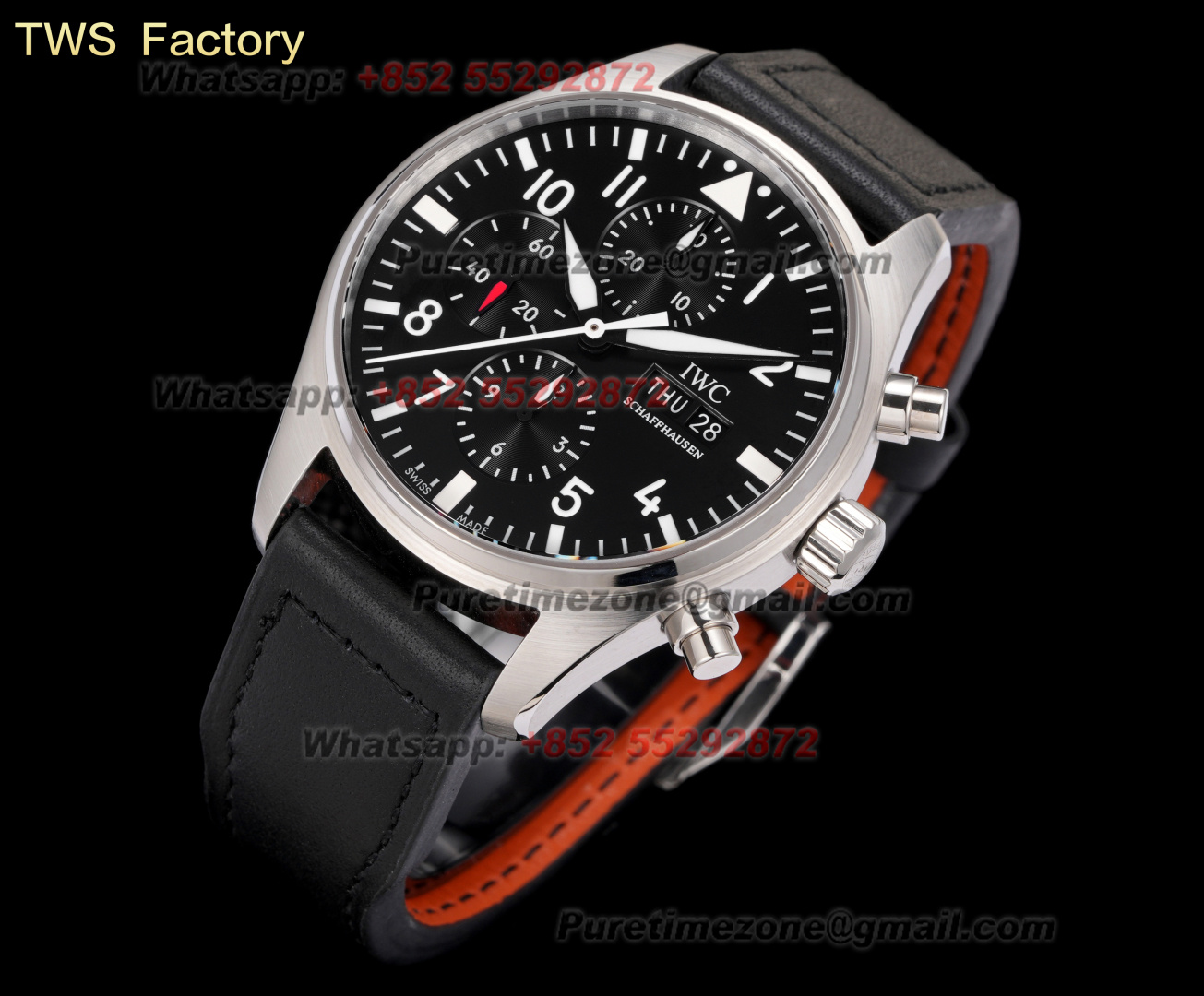 Pilot’s Chronograph IW377709 Automatic Mens Watch Super Clone TWSF 43mm Black Dial Leather Strap A69385
