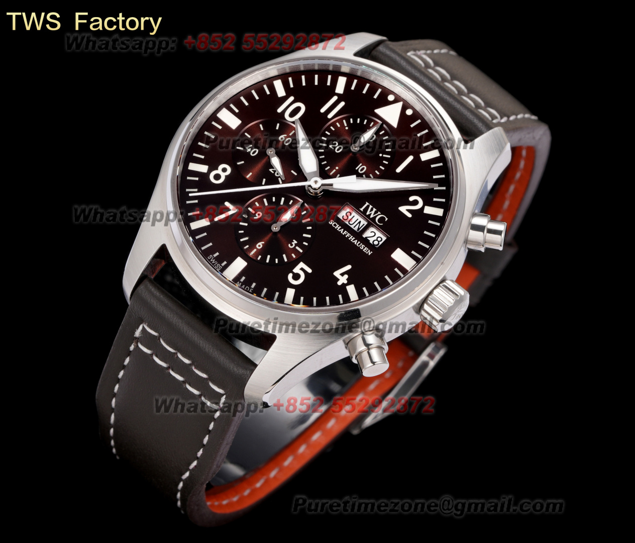 Pilot’s Chronograph IW377713 Automatic Mens Watch Super Clone TWSF 43mm Brown Dial Leather Strap A69385