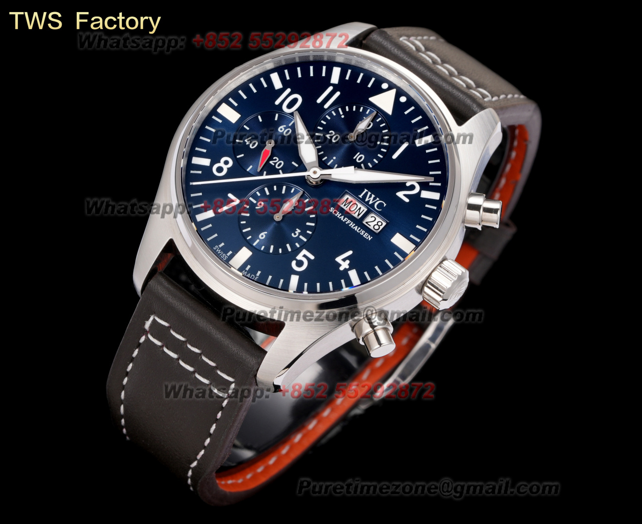 Pilot’s Chronograph IW377714 Automatic Mens Watch Super Clone TWSF 43mm Blue Dial Brown Leather Strap A69385