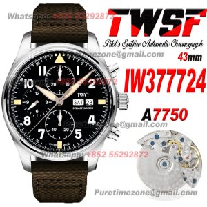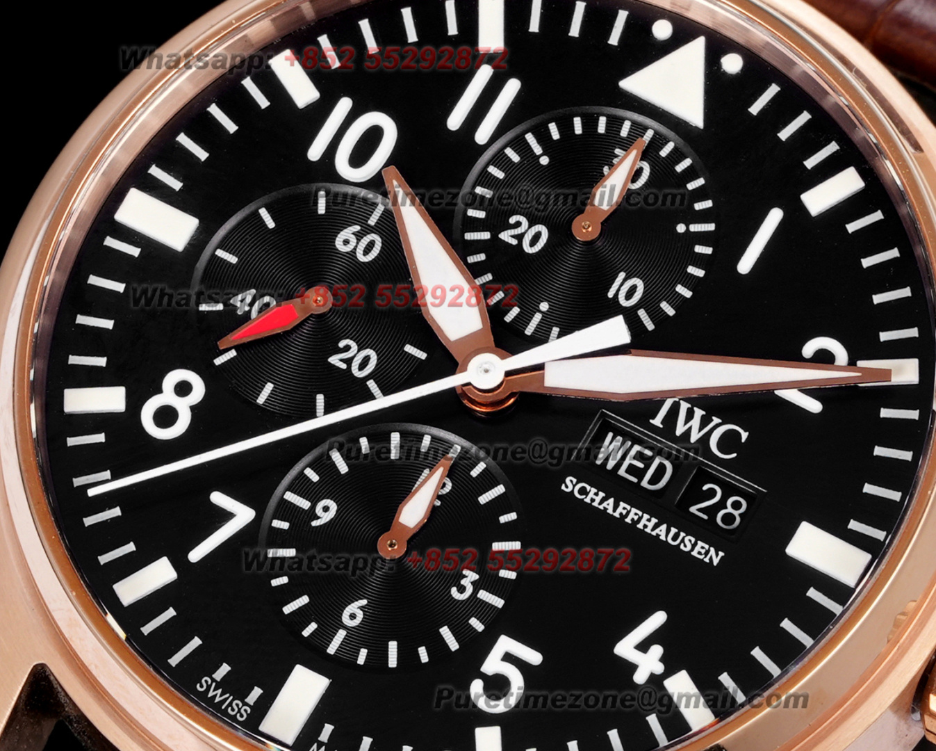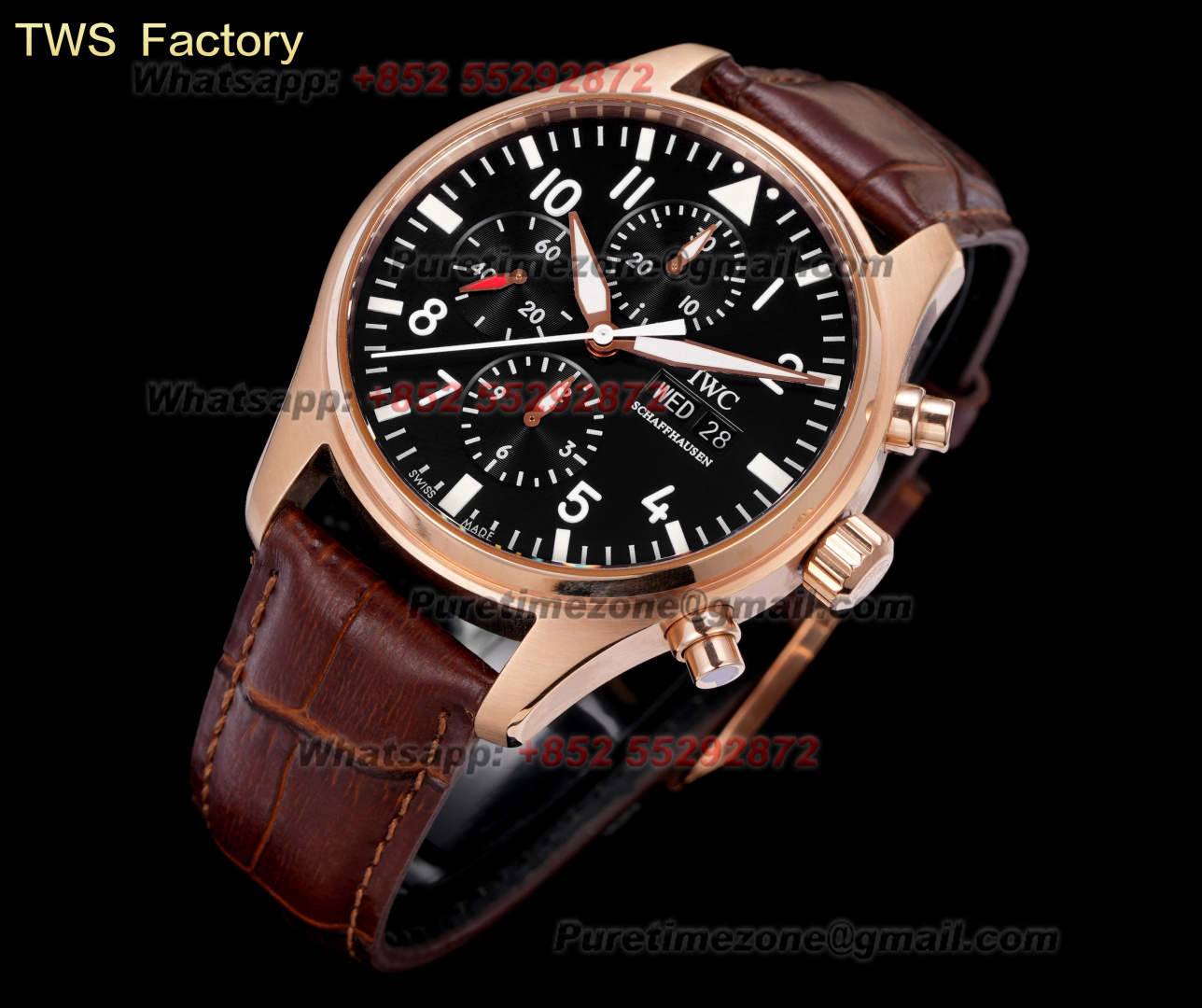 Pilot’s Chronograph IW377723 Automatic Mens Watch Super Clone TWSF 43mm RG Black Dial Brown Leather Strap A69385