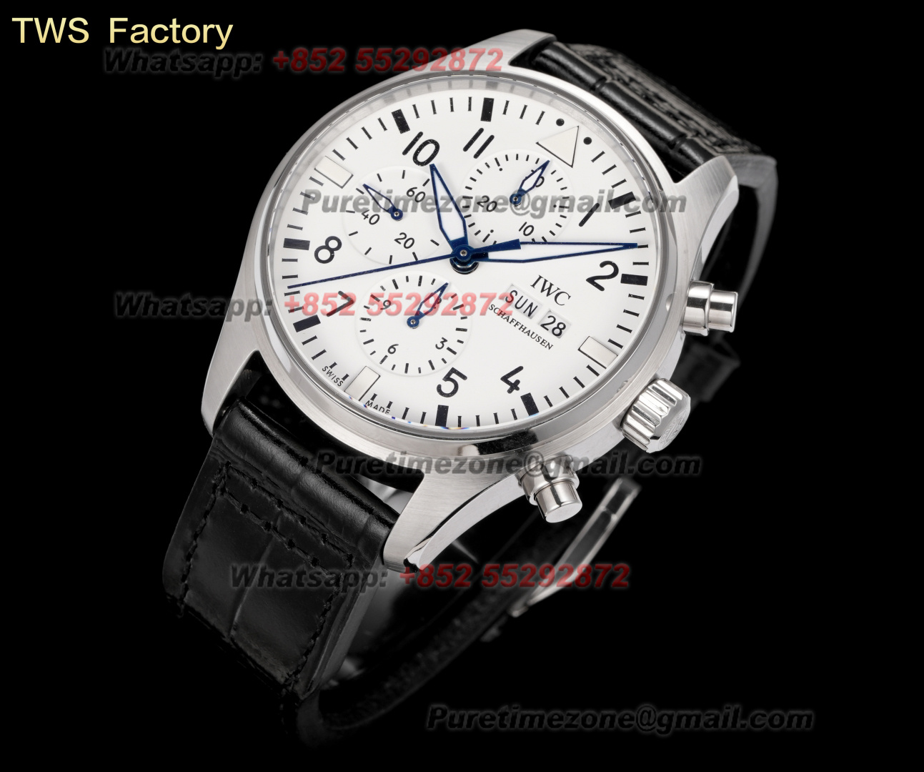 Pilot’s Chronograph IW377725 Automatic Mens Watch Super Clone TWSF 43mm White Dial Black Leather Strap A69385