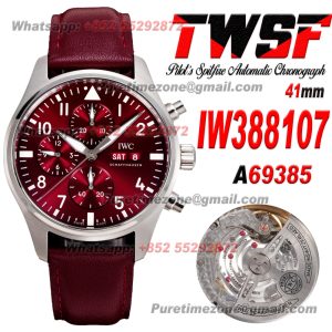 Pilot's Chronograph IW388107 Automatic Mens Watch Super Clone TWSF 41mm Red Dial Leather Strap A69385 $620.00 $520.00