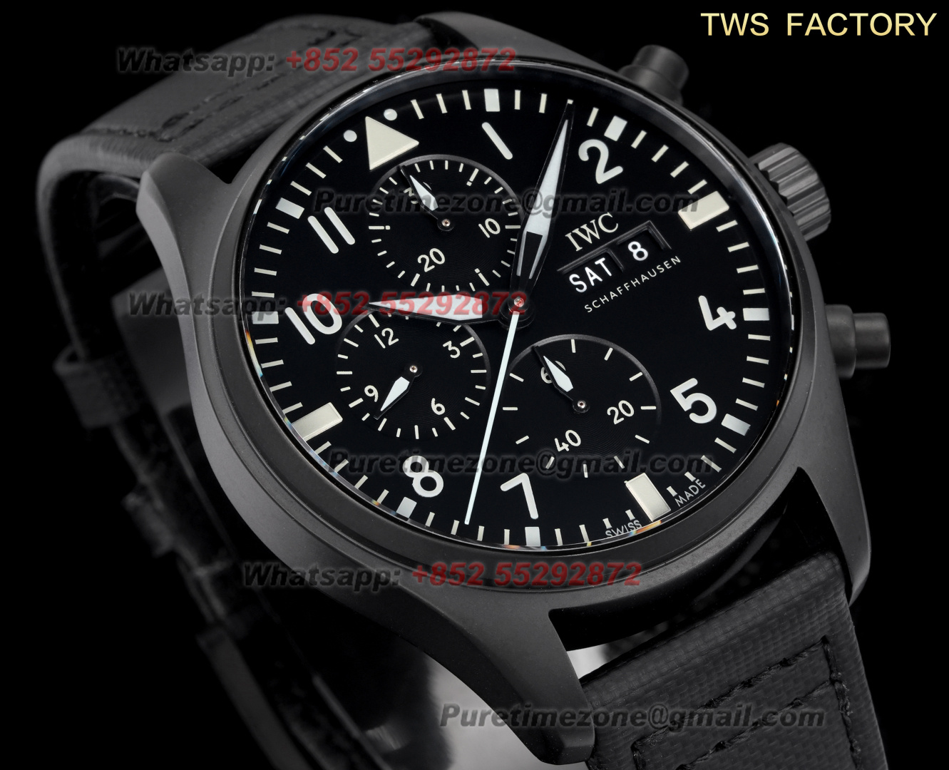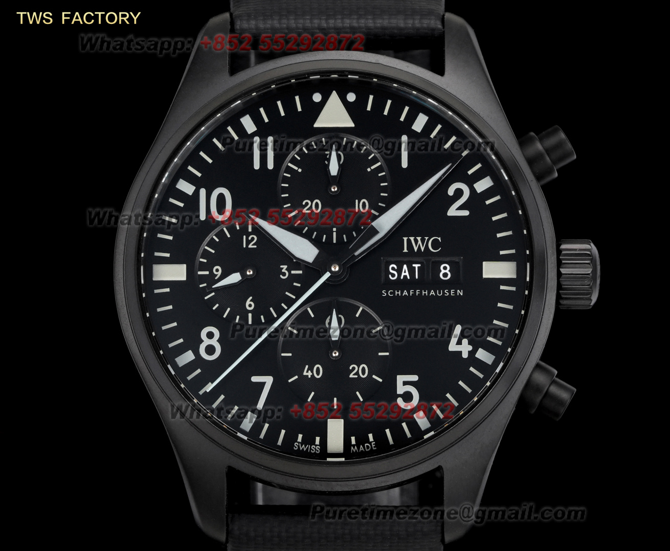 Pilot’s TOP GUN IW389008 Automatic Chronograph Mens Watch Super Clone APSF 44 Ceramics Case Blue Angel Dial Nylon Strap SA69381