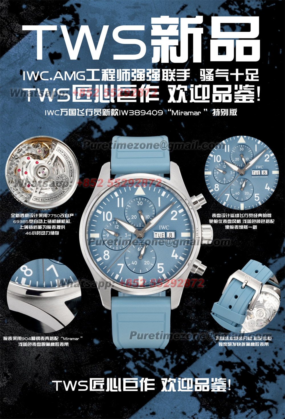 Decoration: Platinum plated movement plate and rotor which are made according to the genuine movement, the best looking IWC 69385 Movement Clone at the moment.