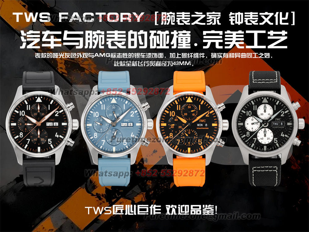 Pilot’s Chronograph IW388108 Automatic Chronograph Mens Watch TWSF Super Clone 43 Orange Dial Rubber Strap A69385