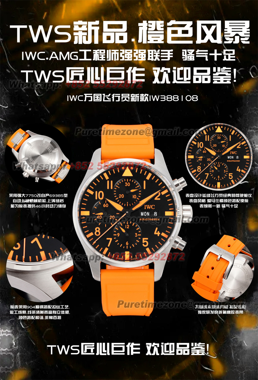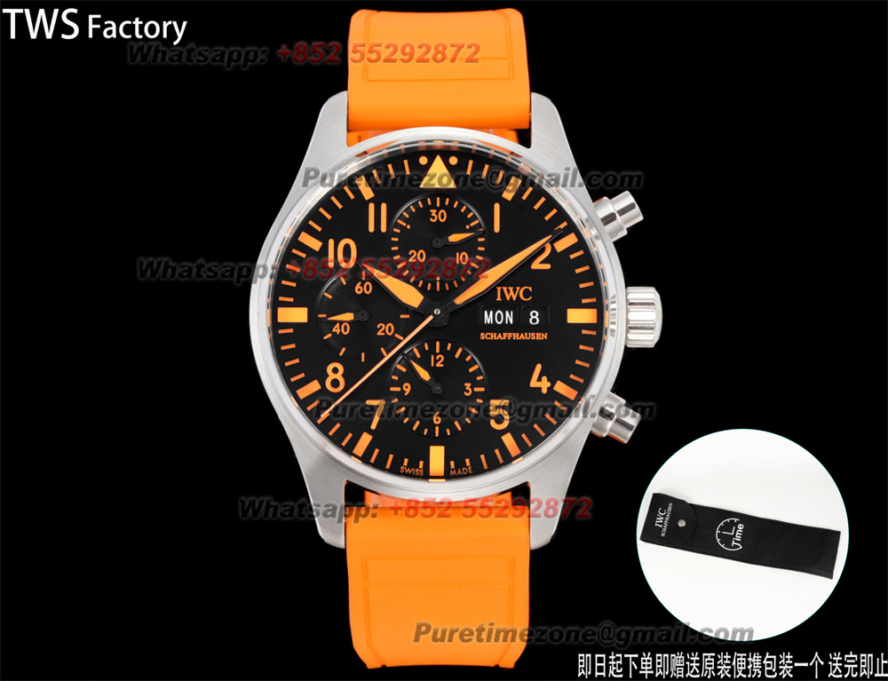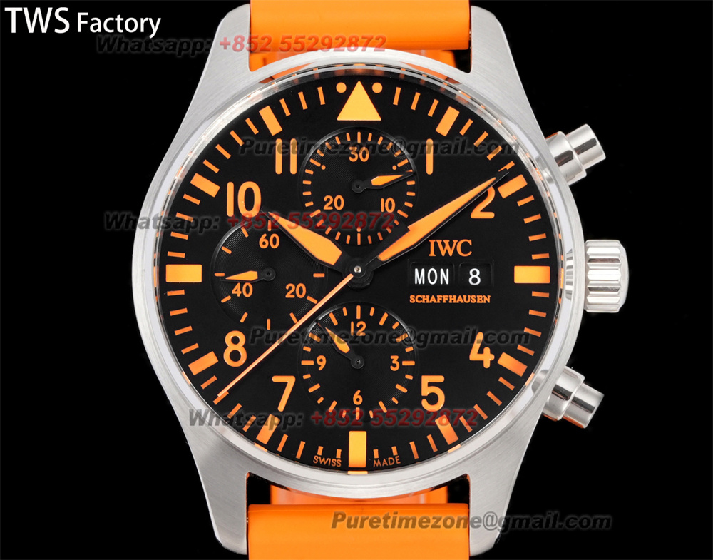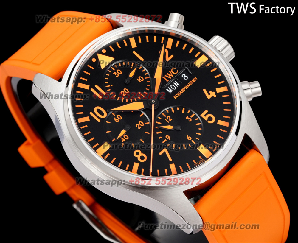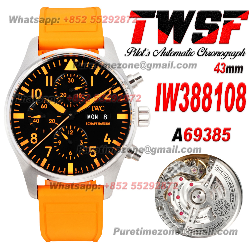 Pilot’s Chronograph IW388108 Automatic Chronograph Mens Watch TWSF Super Clone 43 Orange Dial Rubber Strap A69385