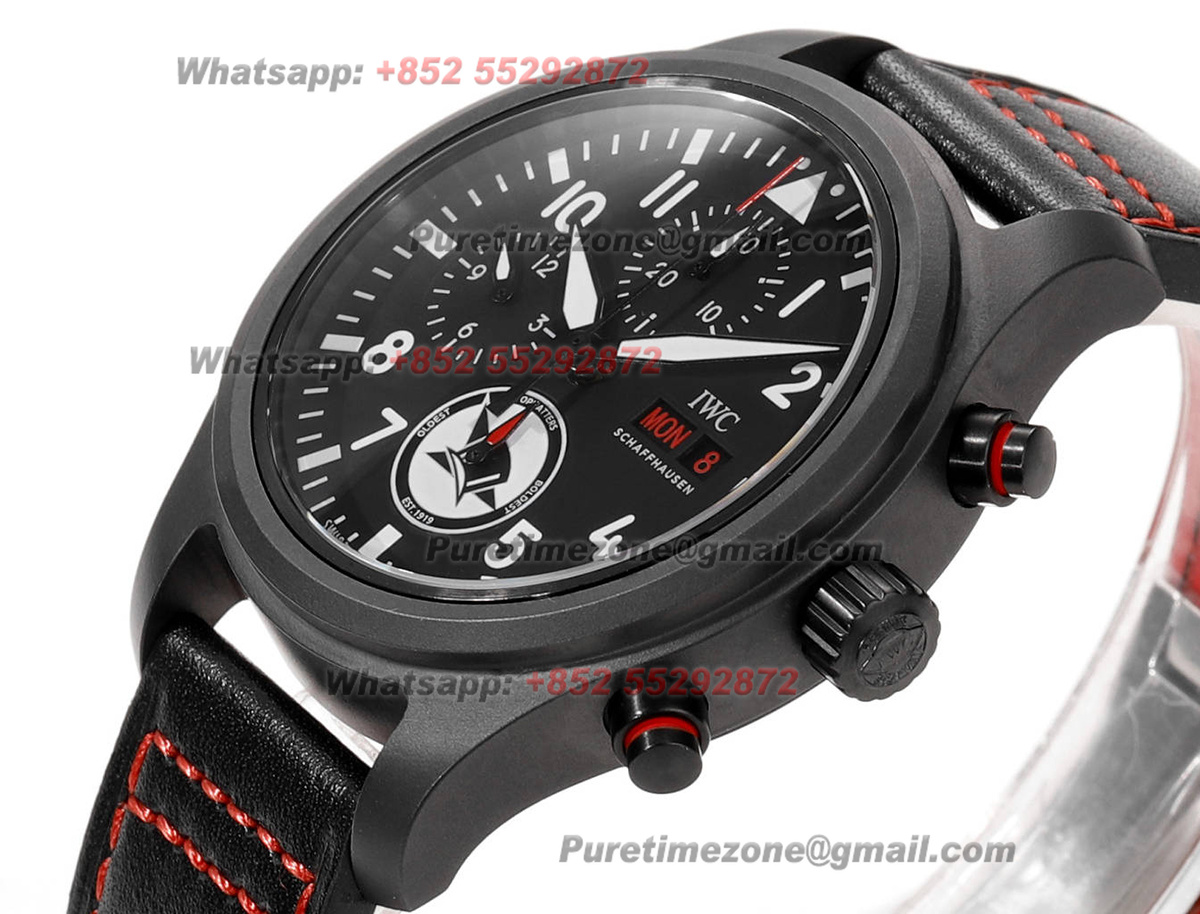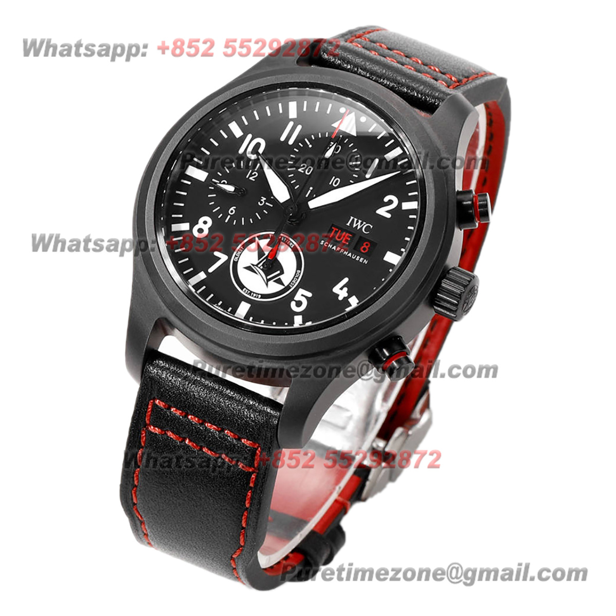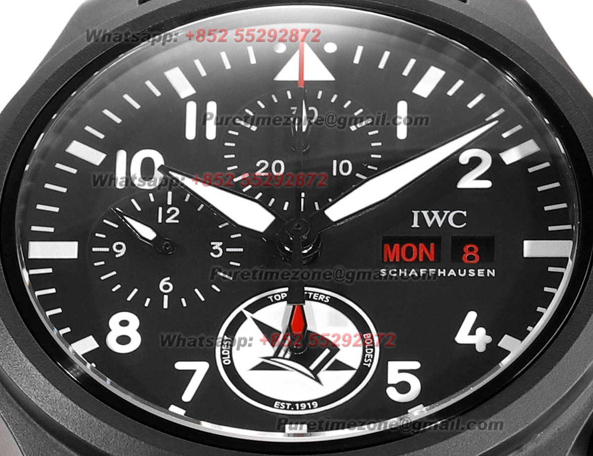 Pilot’s Chronograph Tophatters Ceramic & Titanium IW389108 Automatic Mens Watch Super Clone TWF 44.5 Black Dial Nylon Strap A7750