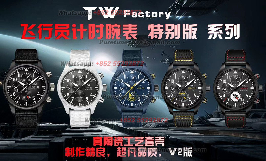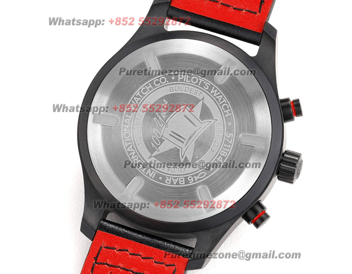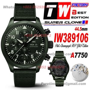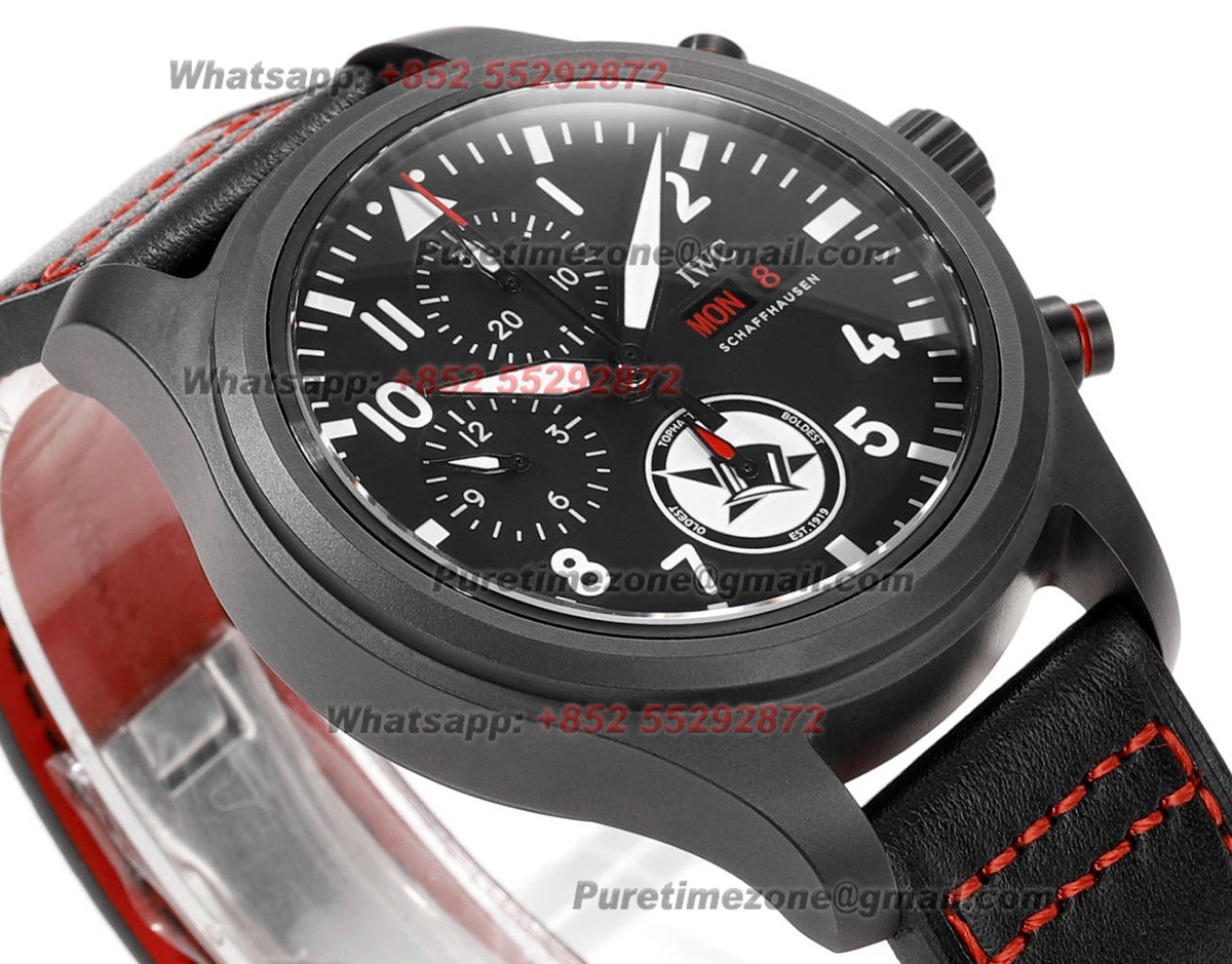 Pilot’s Chronograph Tophatters Ceramic & Titanium IW389108 Automatic Mens Watch Super Clone TWF 44.5 Black Dial Nylon Strap A7750