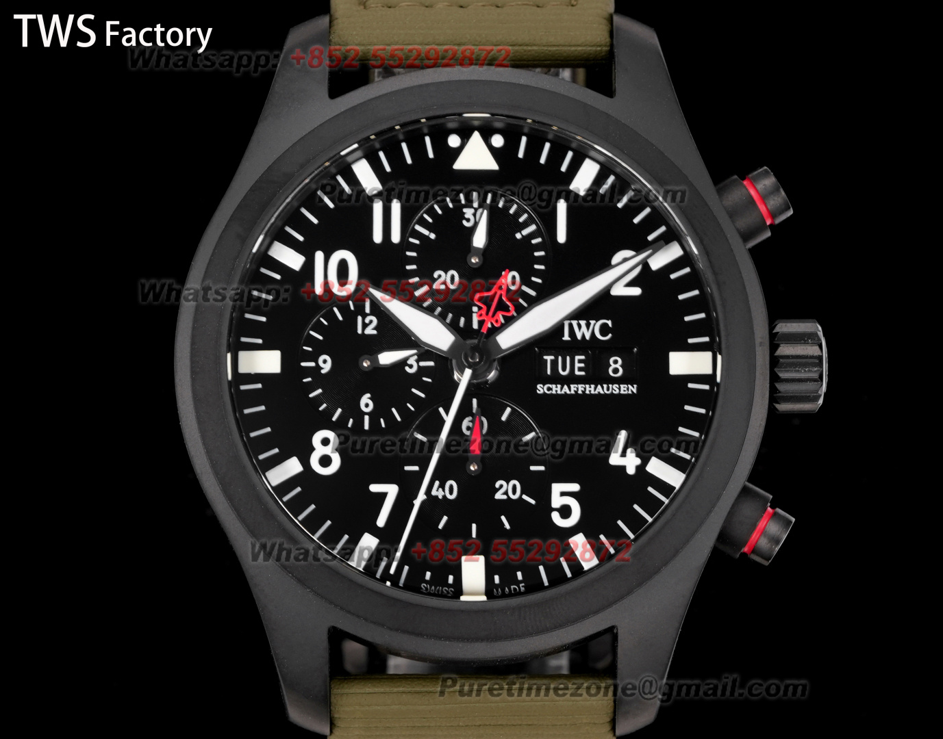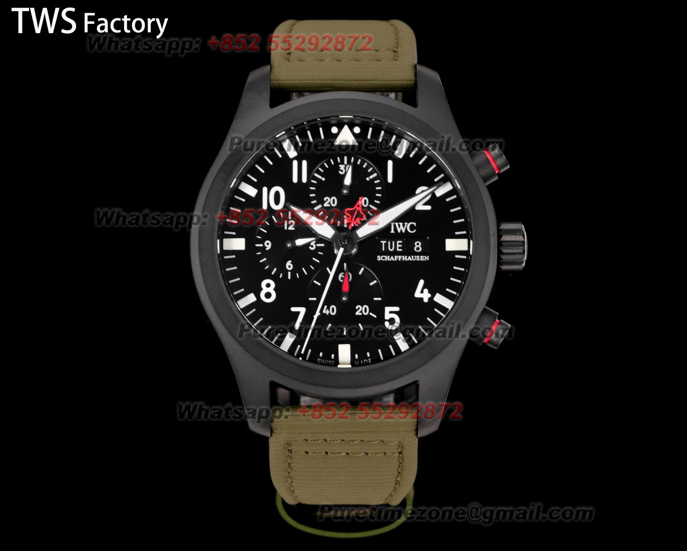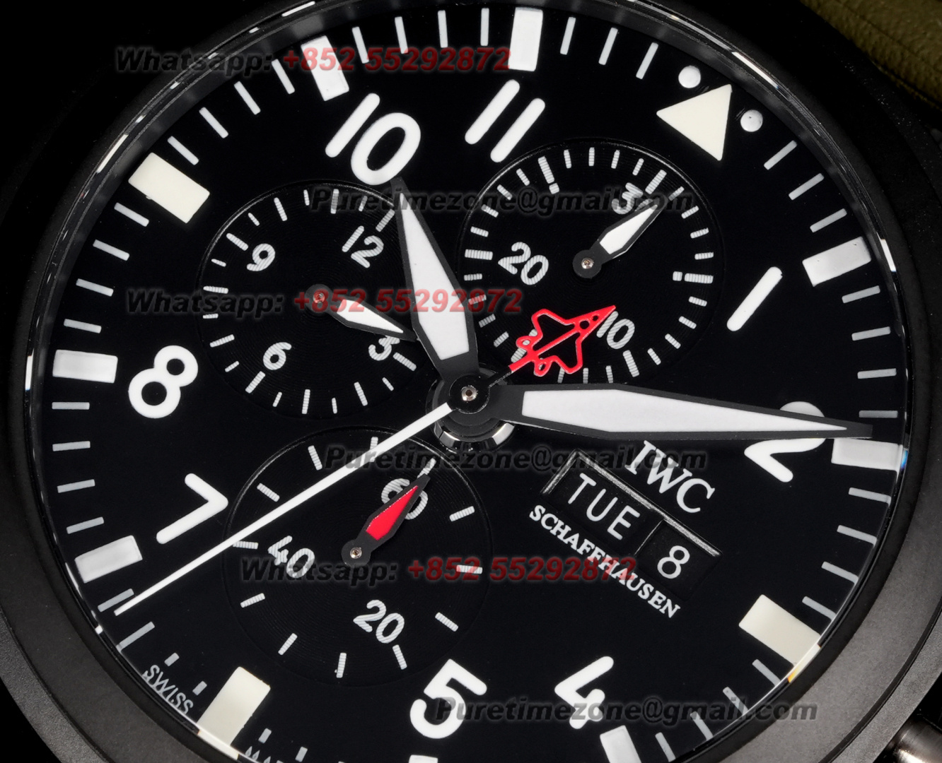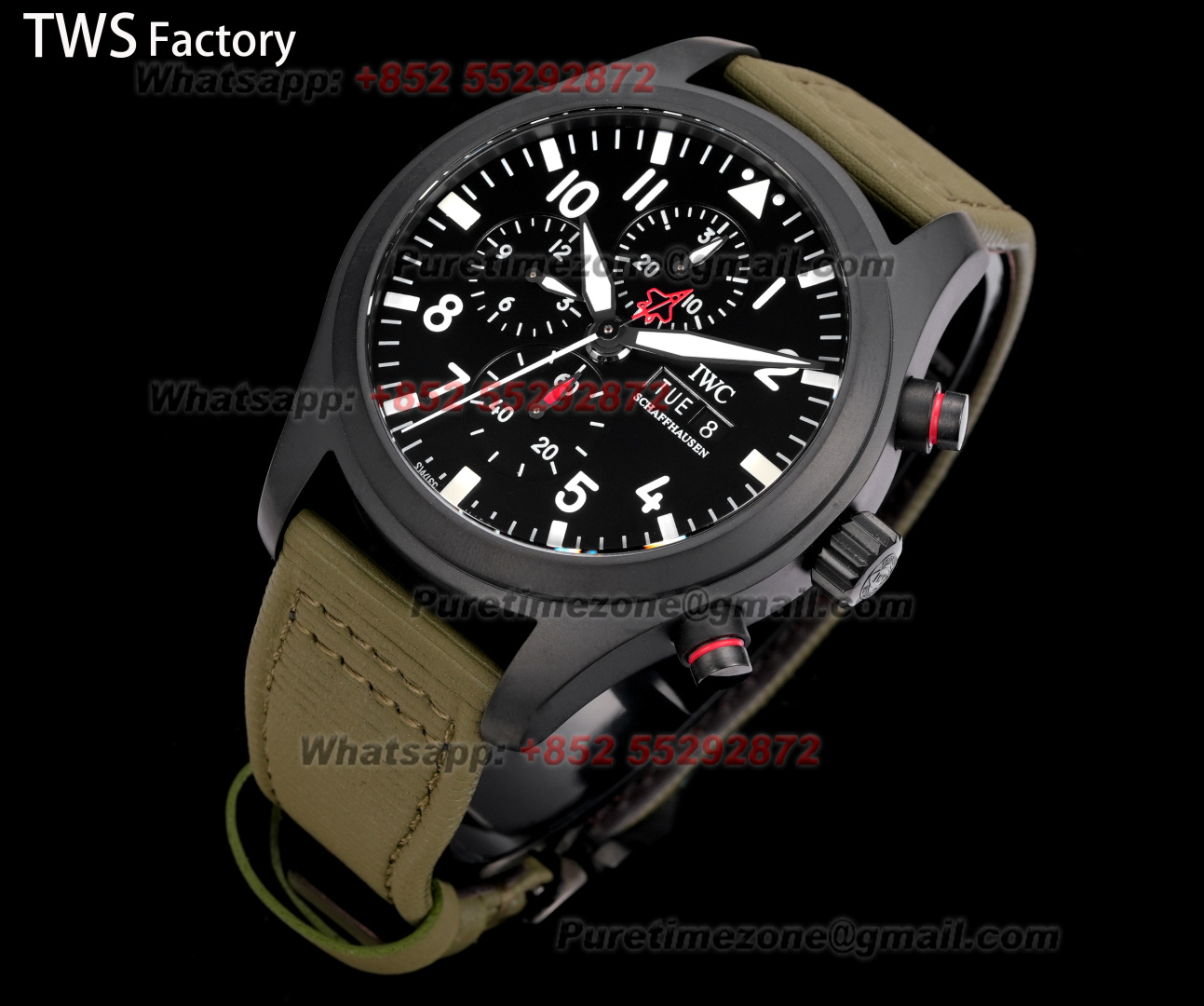 Pilot’s Double Chronograph IW378601 Automatic Mens Watch Super Clone 44 Black Dial Green Nylon Strap A7750