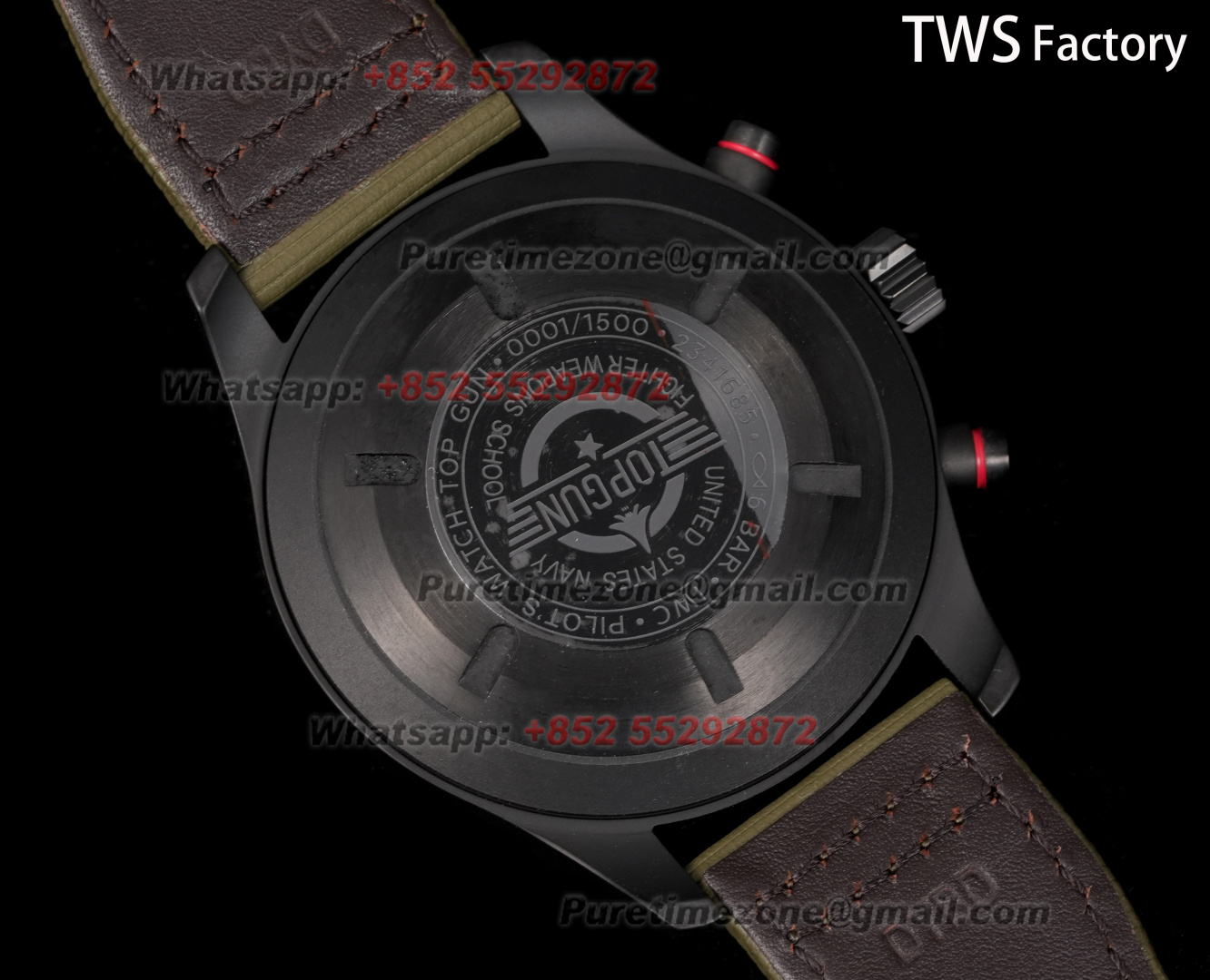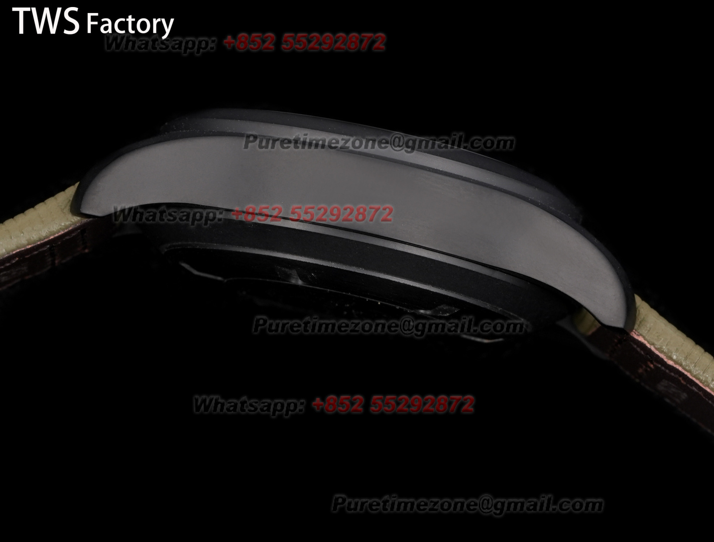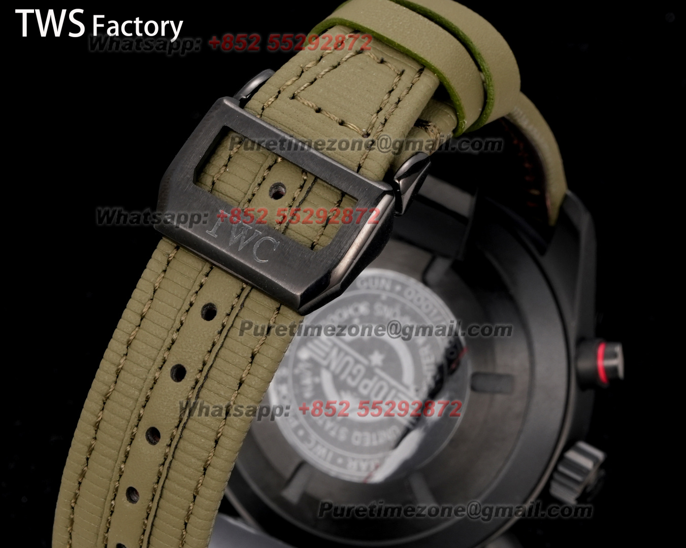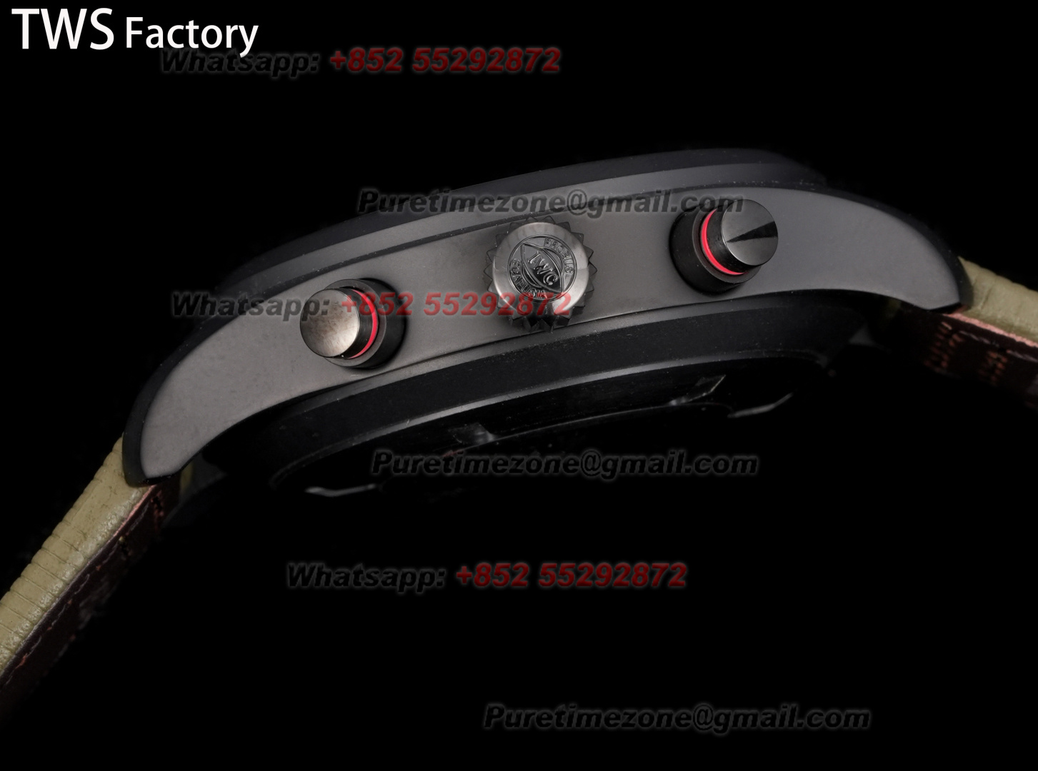 Pilot’s Double Chronograph IW378601 Automatic Mens Watch Super Clone 44 Black Dial Green Nylon Strap A7750