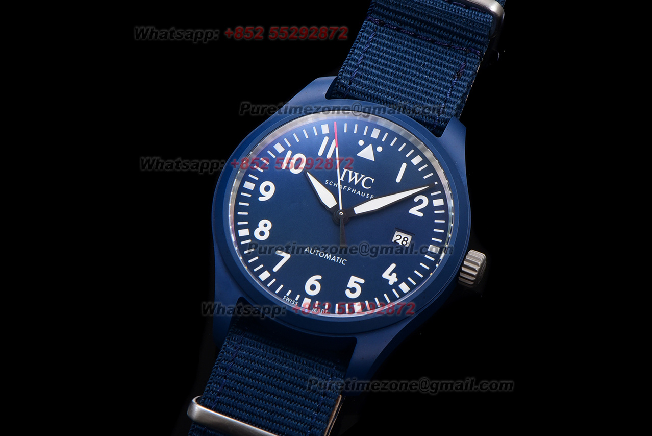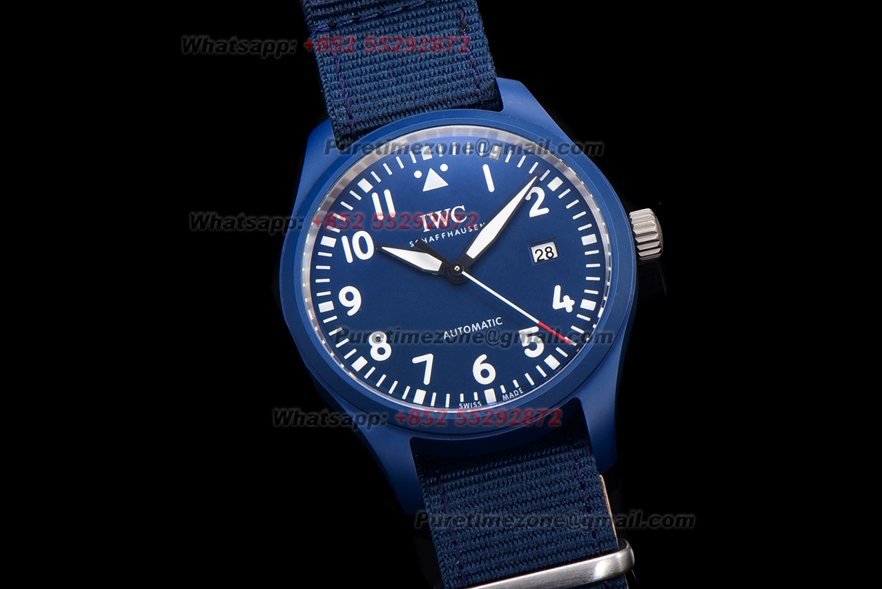 Pilot’s Laureus Sport For Good IW328101 Automatic Mens Watch Super Clone M+F Blue Ceramic Blue Dial Nylon Strap A35111