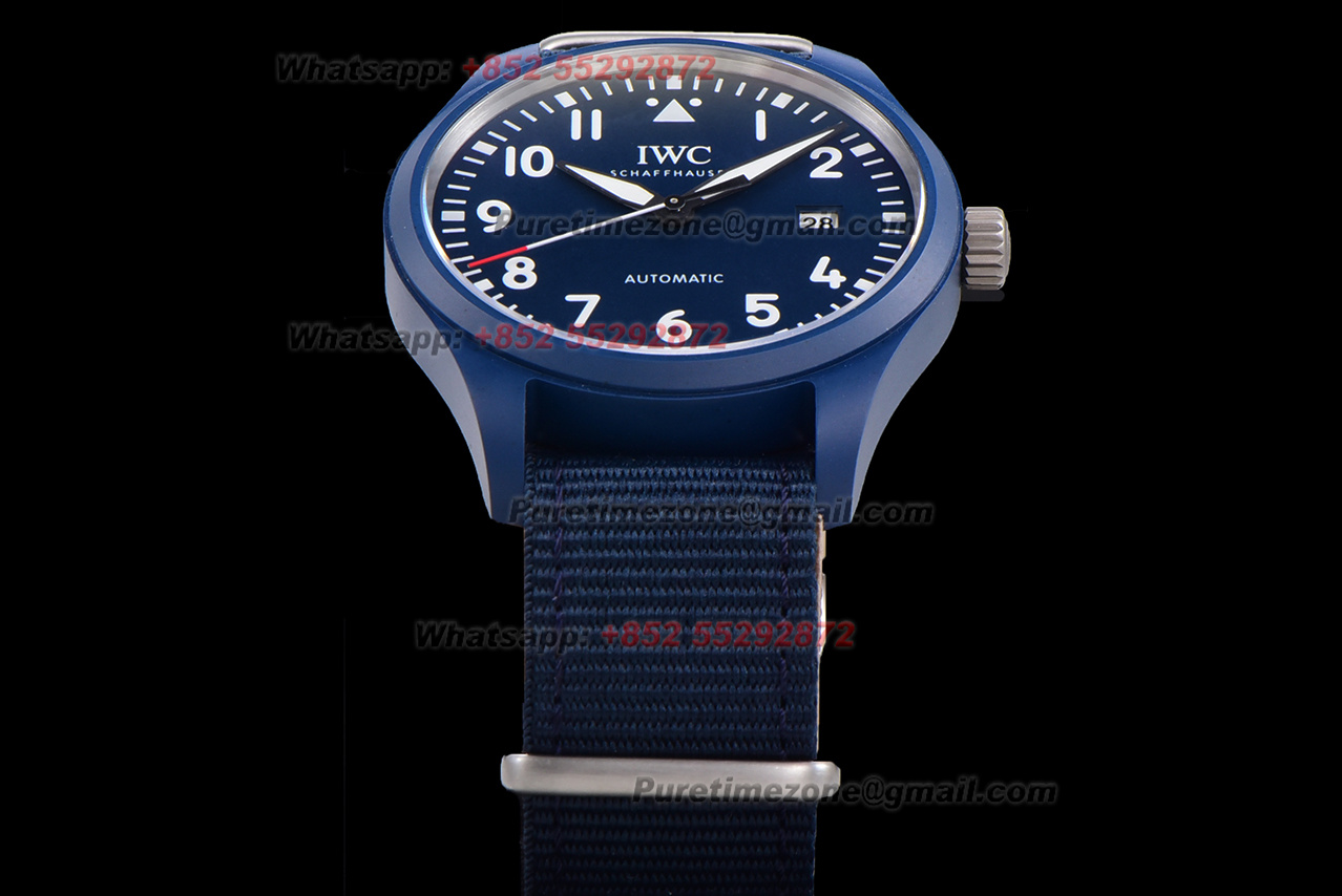 Home IWC Pilot Pilot’s Laureus Sport For Good IW328101 Automatic Mens Watch Super Clone M+F Blue Ceramic Blue Dial Nylon Strap A35111