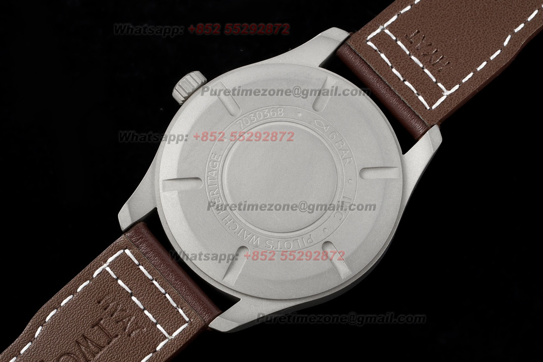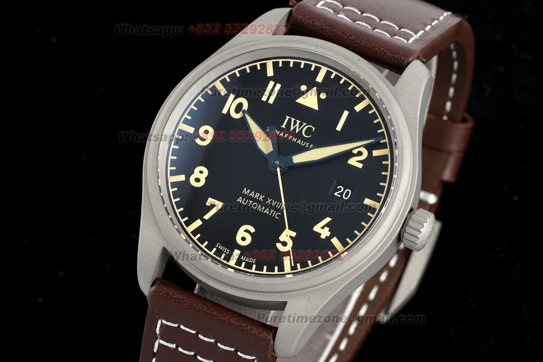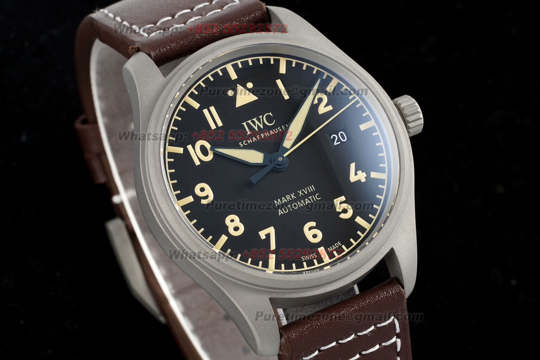 Pilot’s Mark XVIII IW327006 Automatic Mens Watch Super Clone BLSF Titanium Black Dial Brown Leather Strap M9015