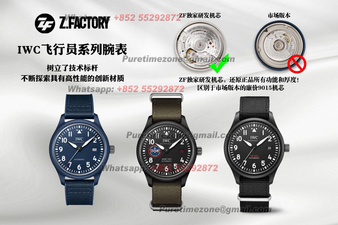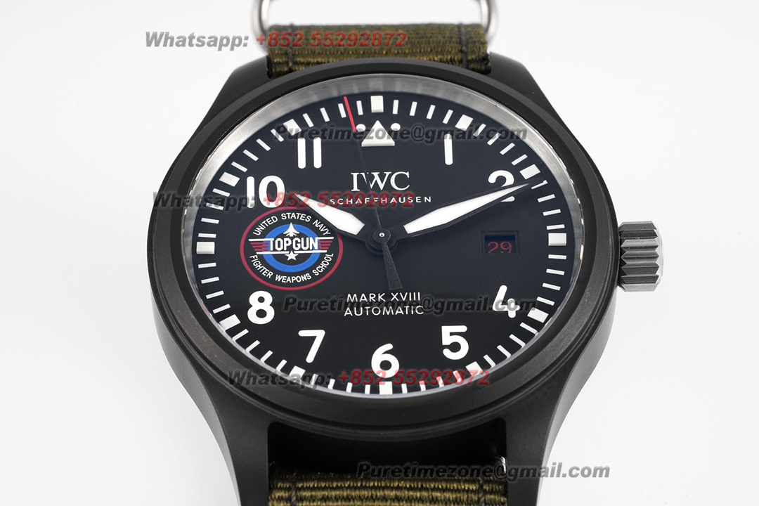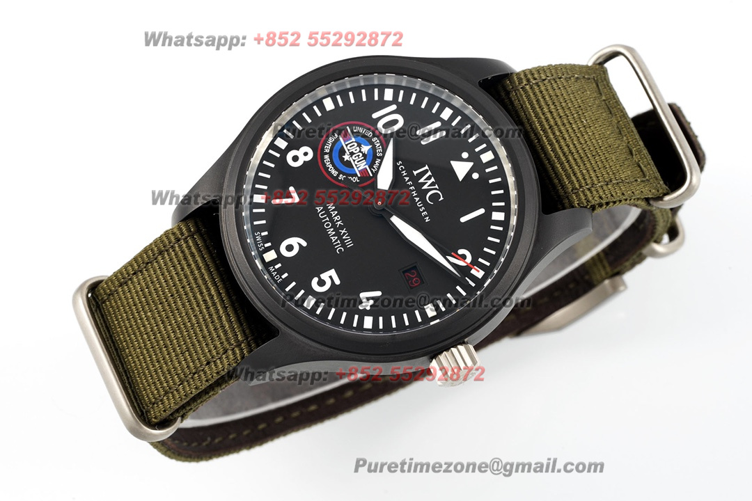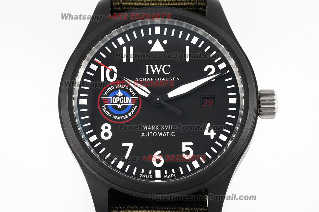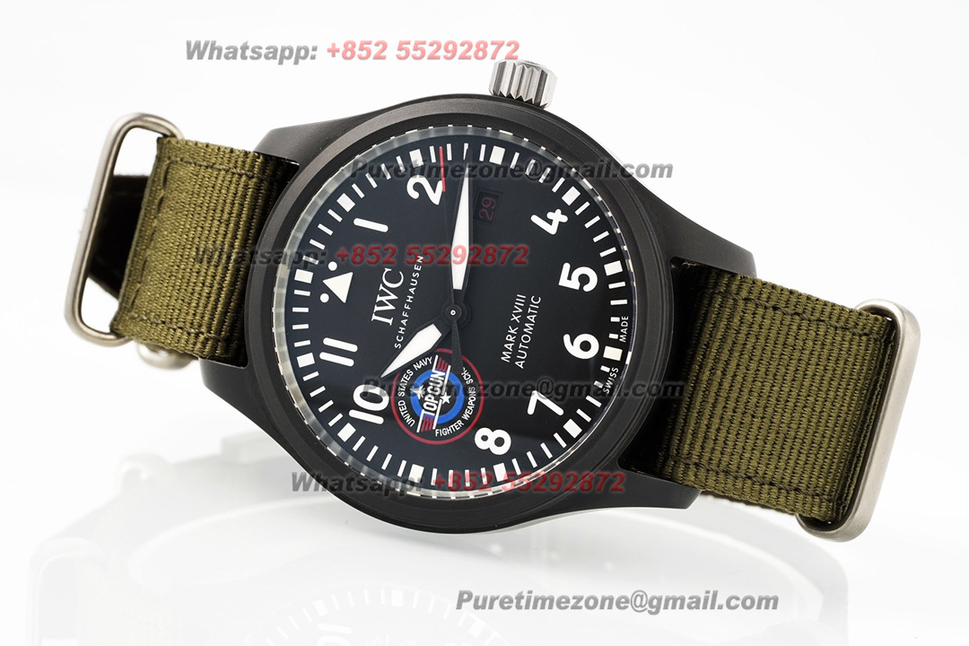 Pilot’s Mark XVIII Top Gun IW324712 Ceramic Automatic Mens Watch Super Clone ZF 41 Black Dial Green Nylon Strap A32111