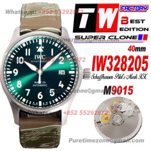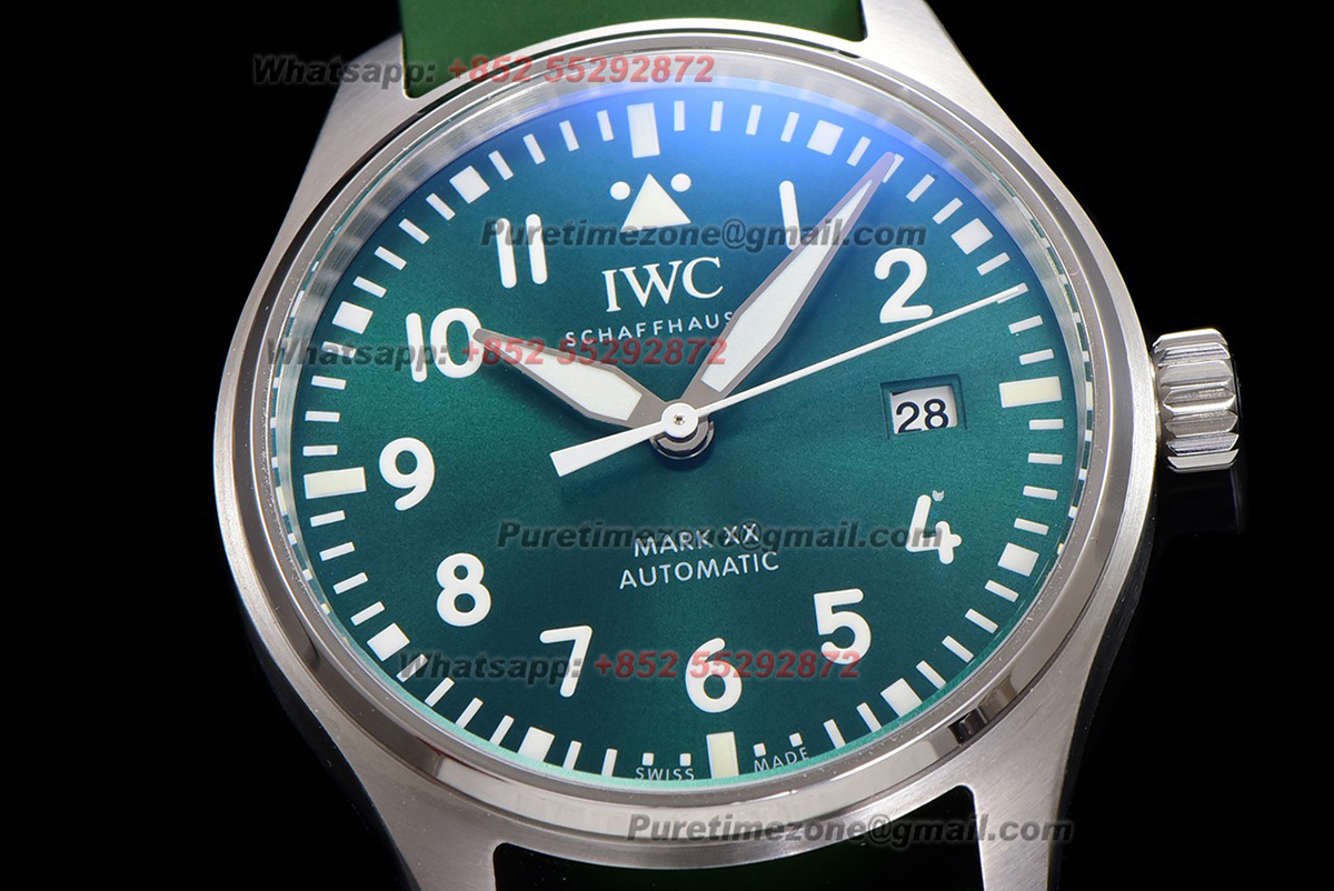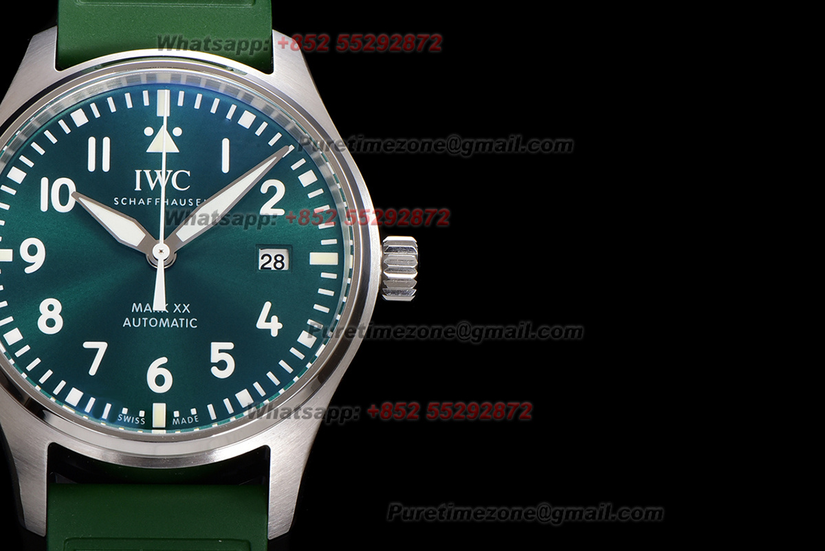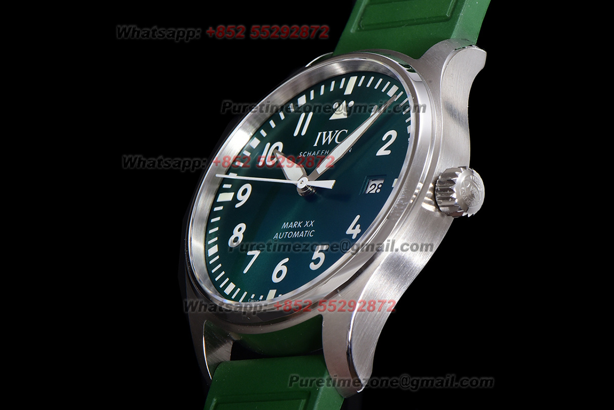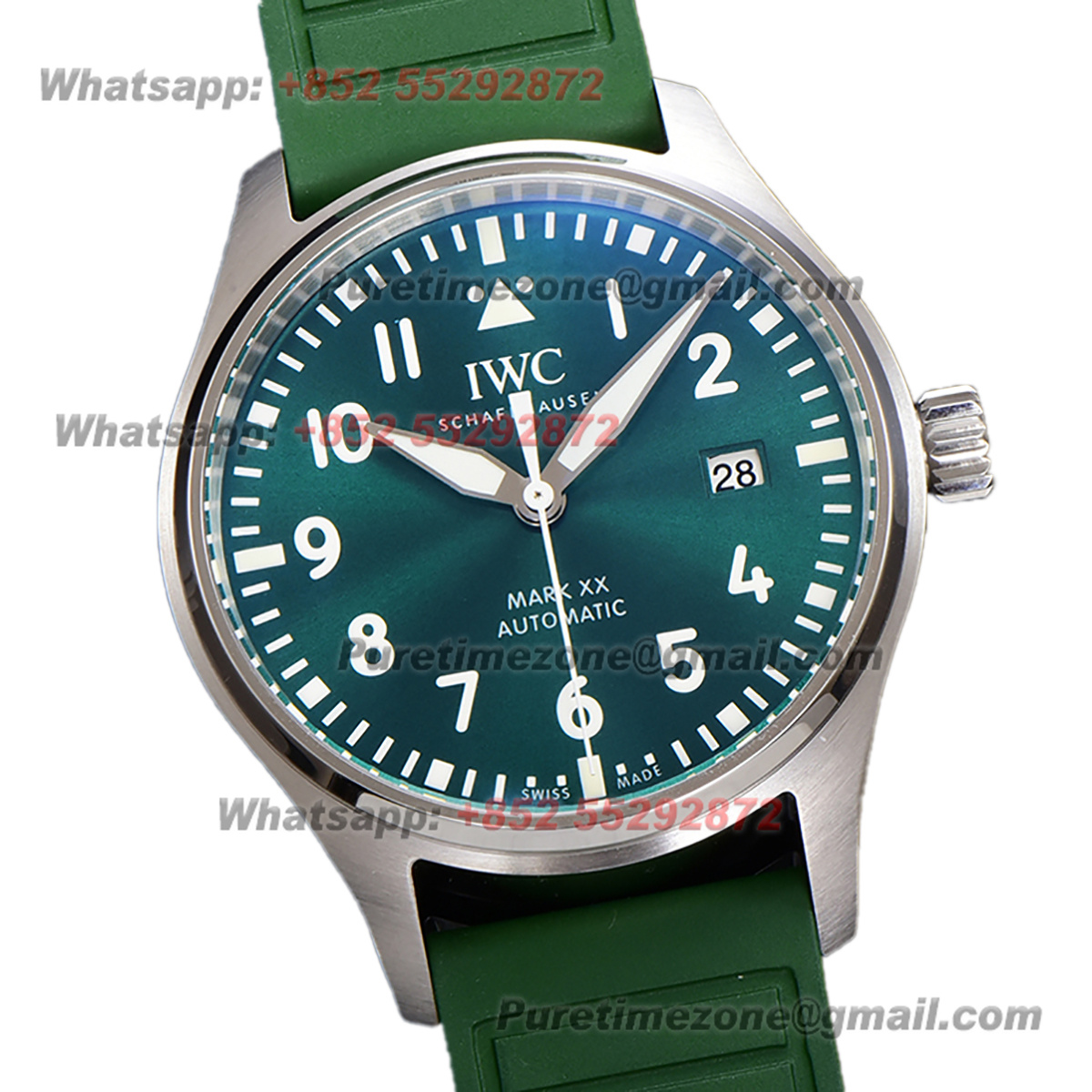 Home IWC Pilot Pilot’s Mark XX IW328205 Automatic Mens Watch Super Clone TWF 40 Green Dial Green Rubber Strap M9015