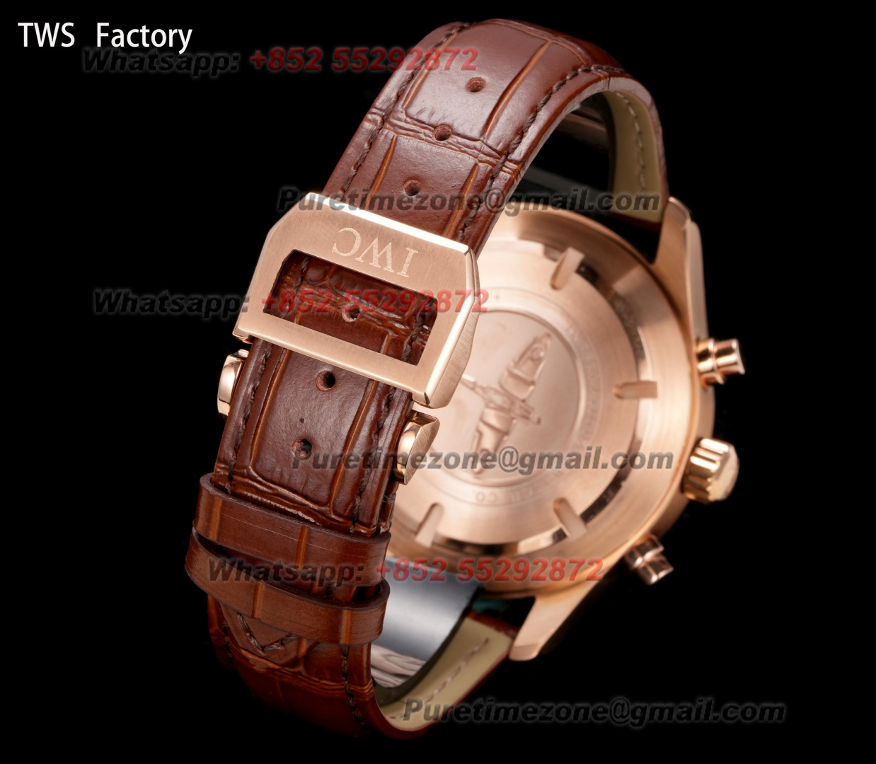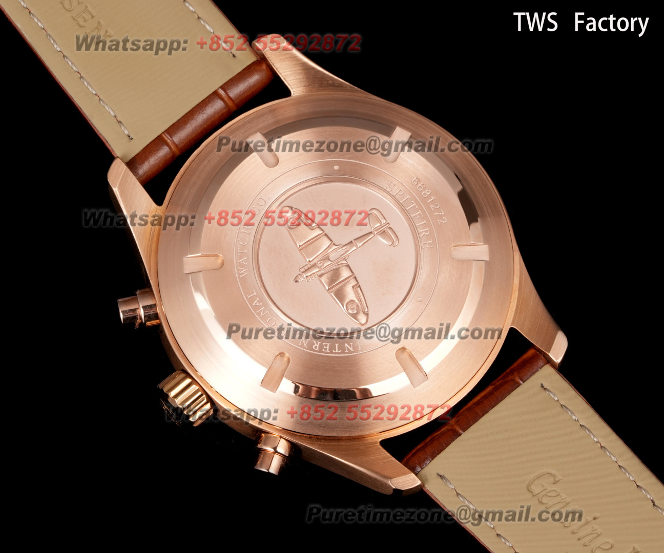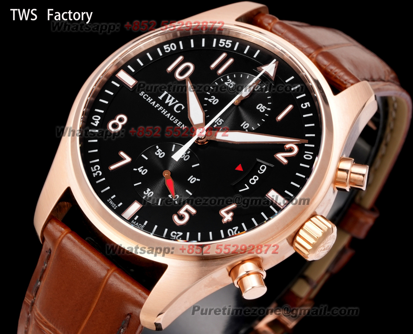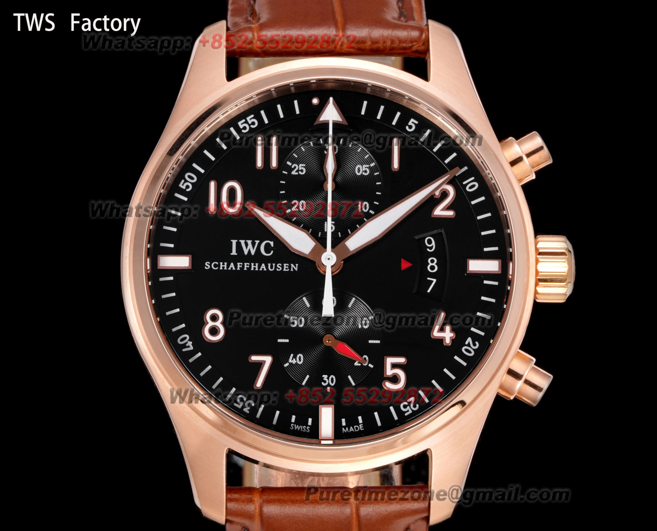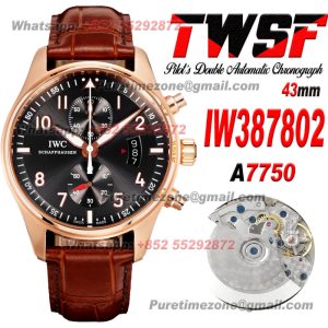 Pilot’s Spitfire Chronograph IW387802 Automatic Mens Watch Super Clone 43 RG Black Dial Brown Leather Strap A7750