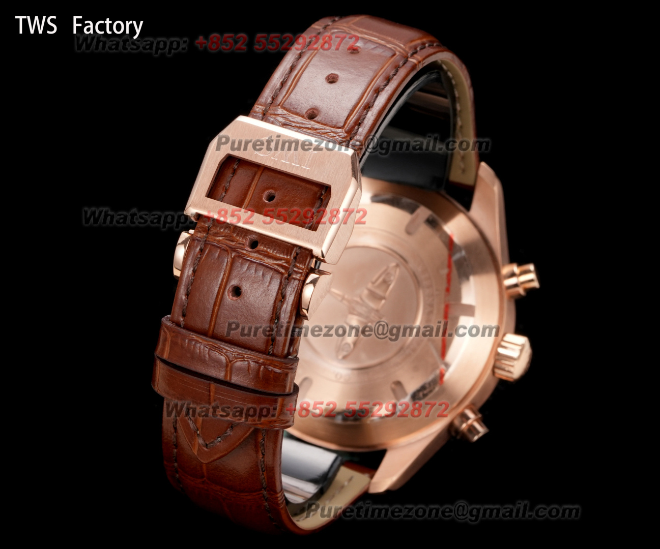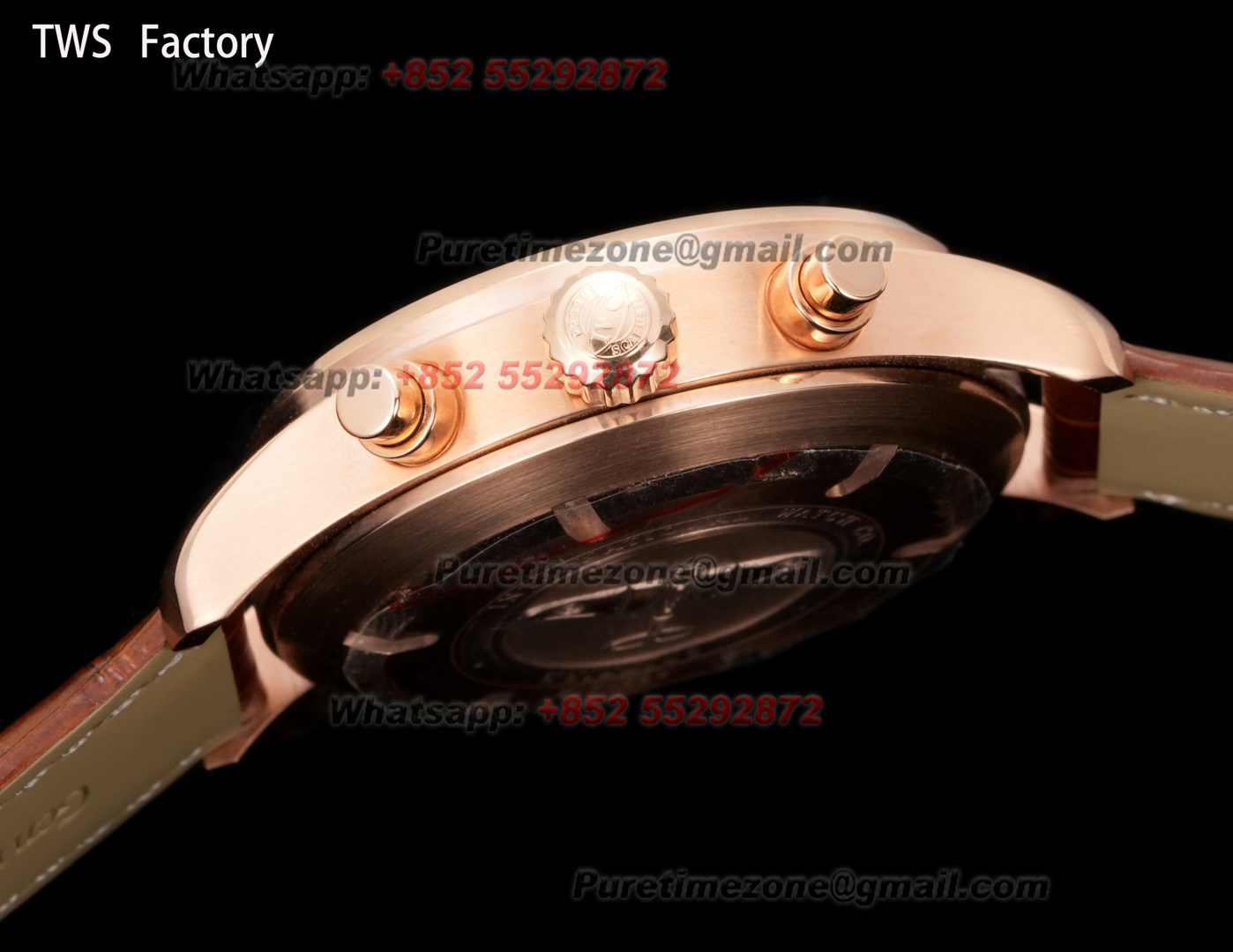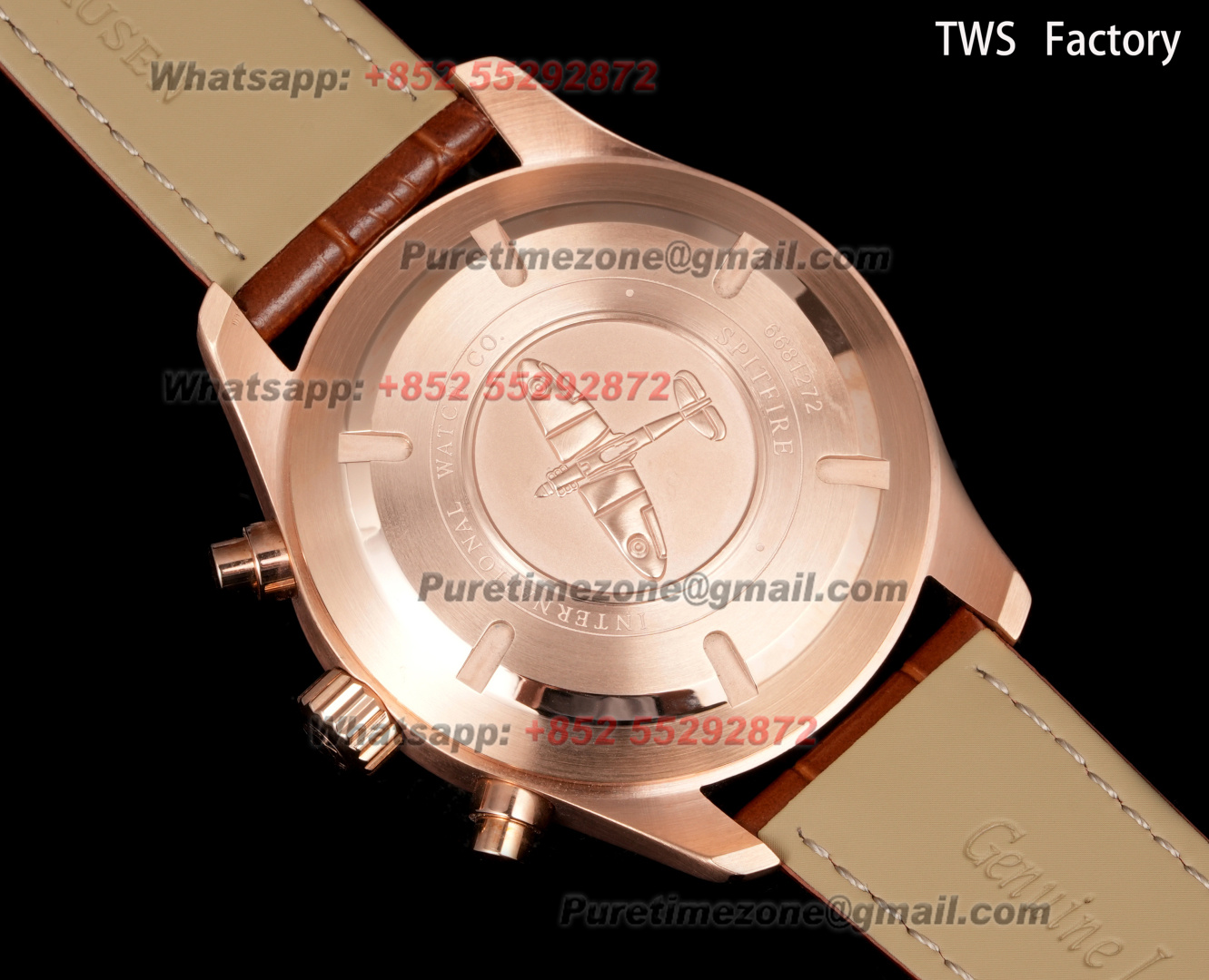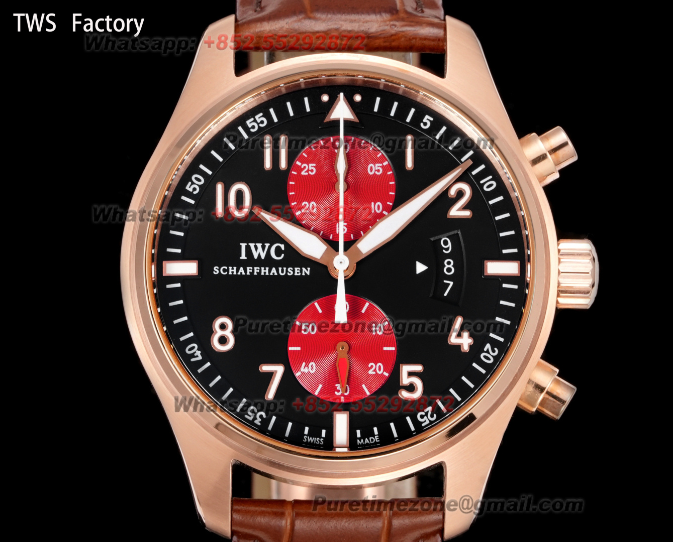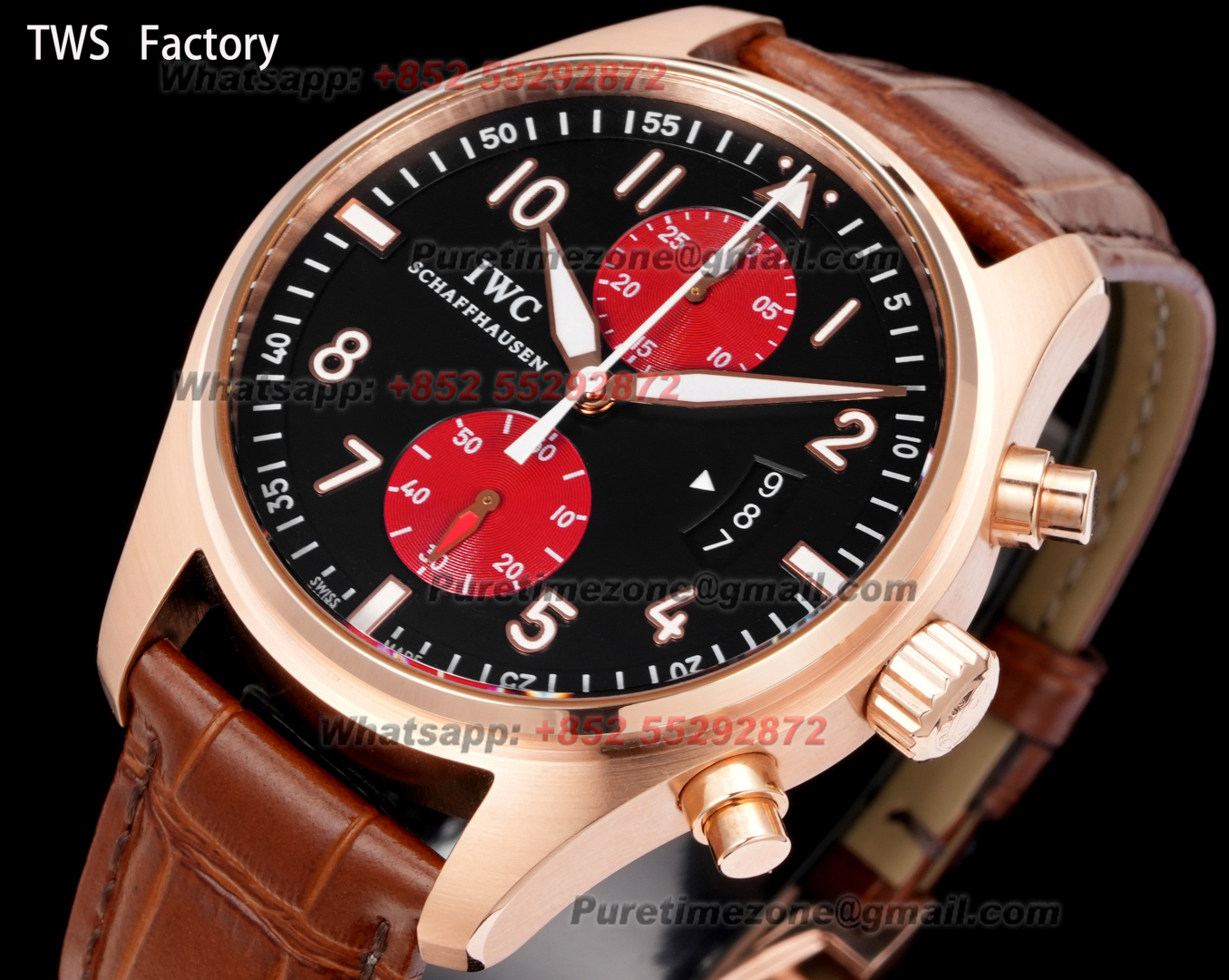 Pilot’s Spitfire Chronograph IW387802 Automatic Mens Watch Super Clone 43 RG Black Red Dial Brown Leather Strap A7750