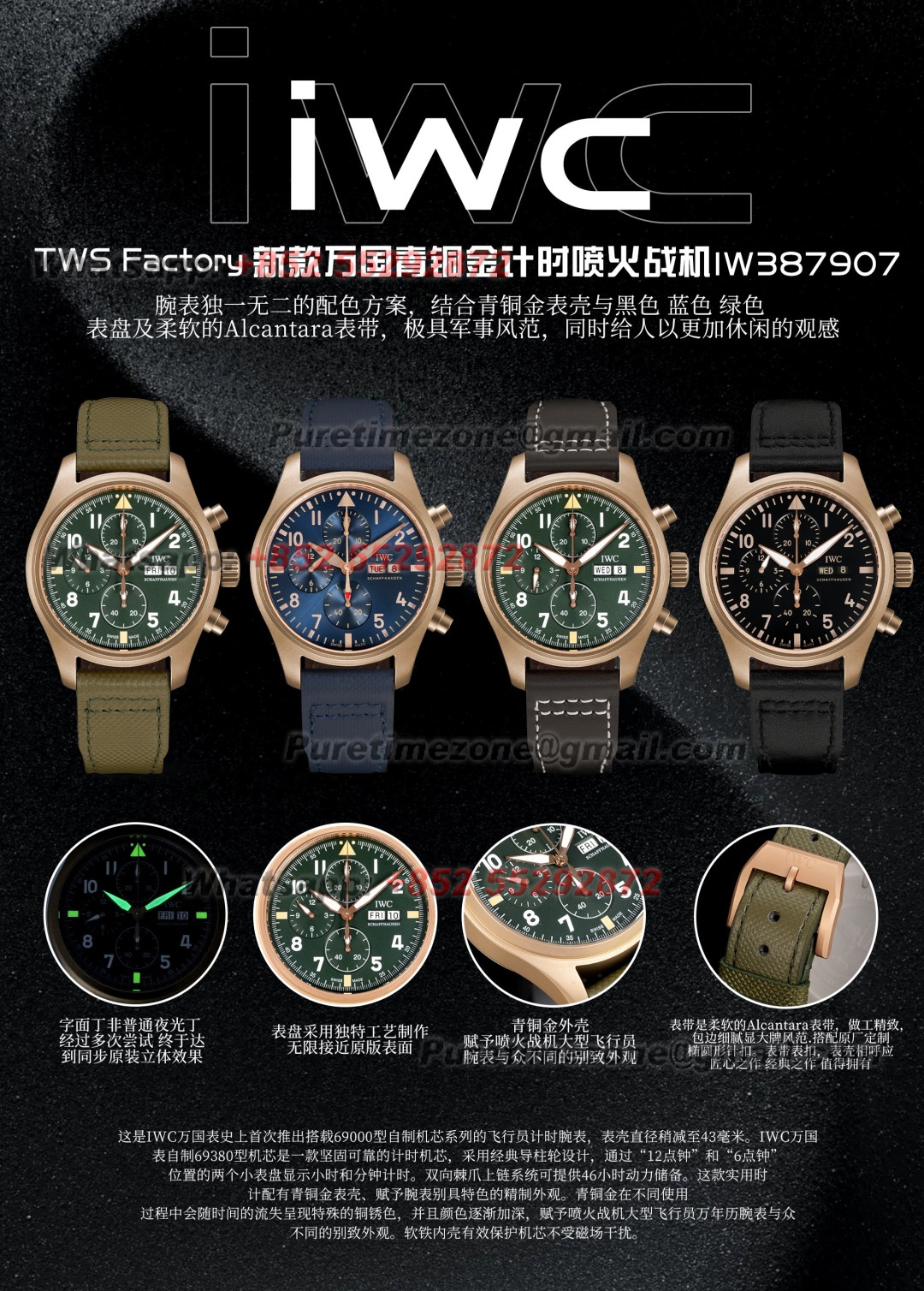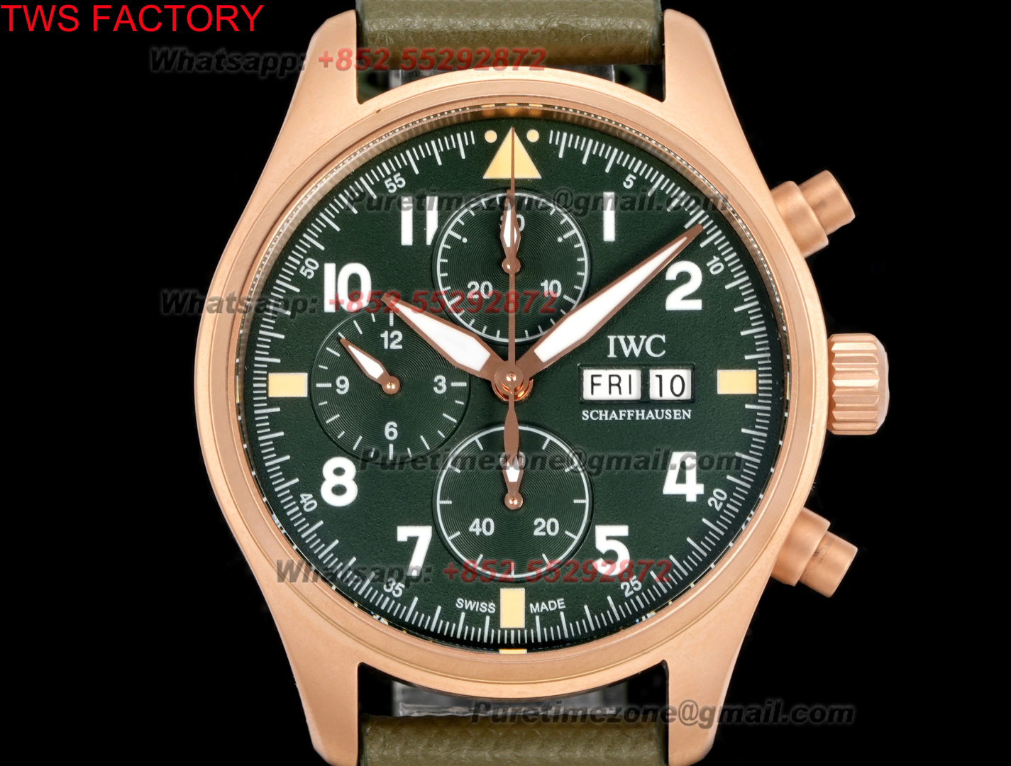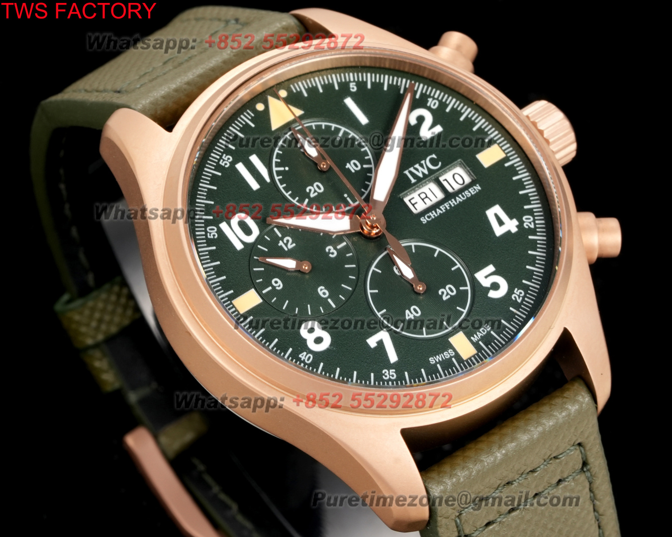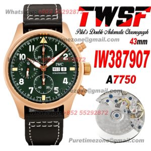 Pilot’s Spitfire Chronograph IW387907 Automatic Mens Watch Super Clone 43 RG Green Dial Green Nylon Strap A69355