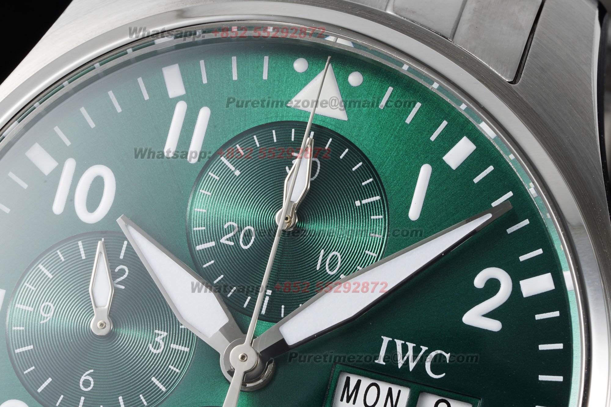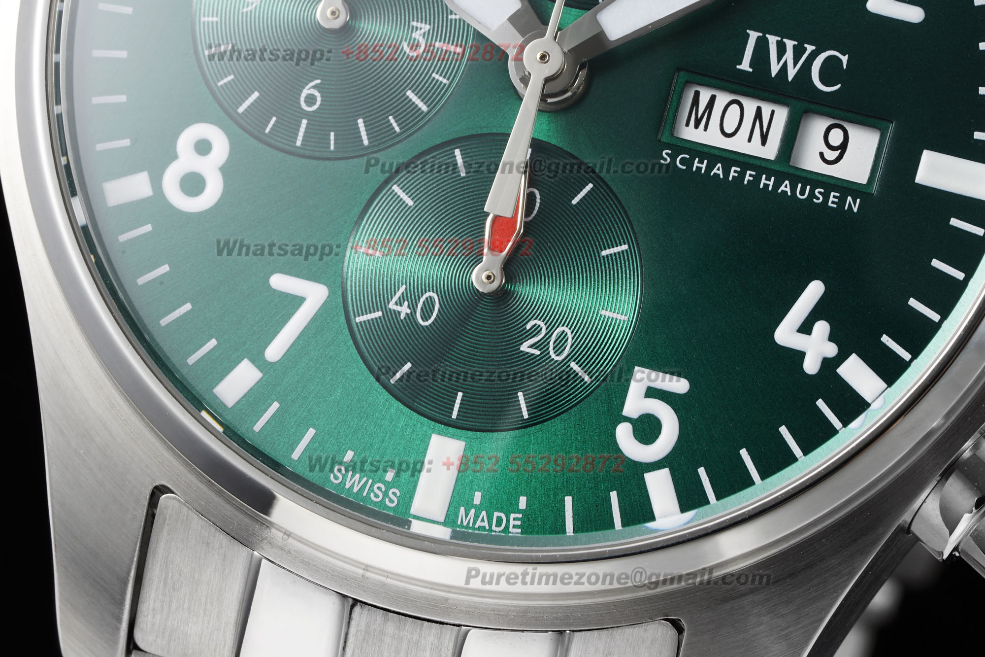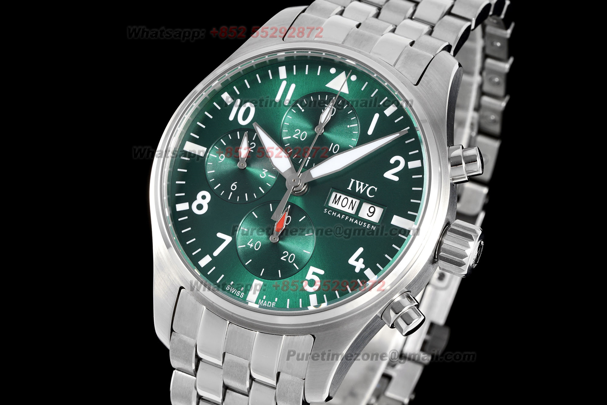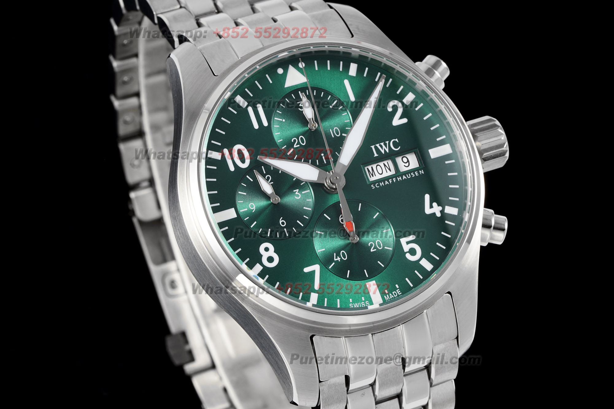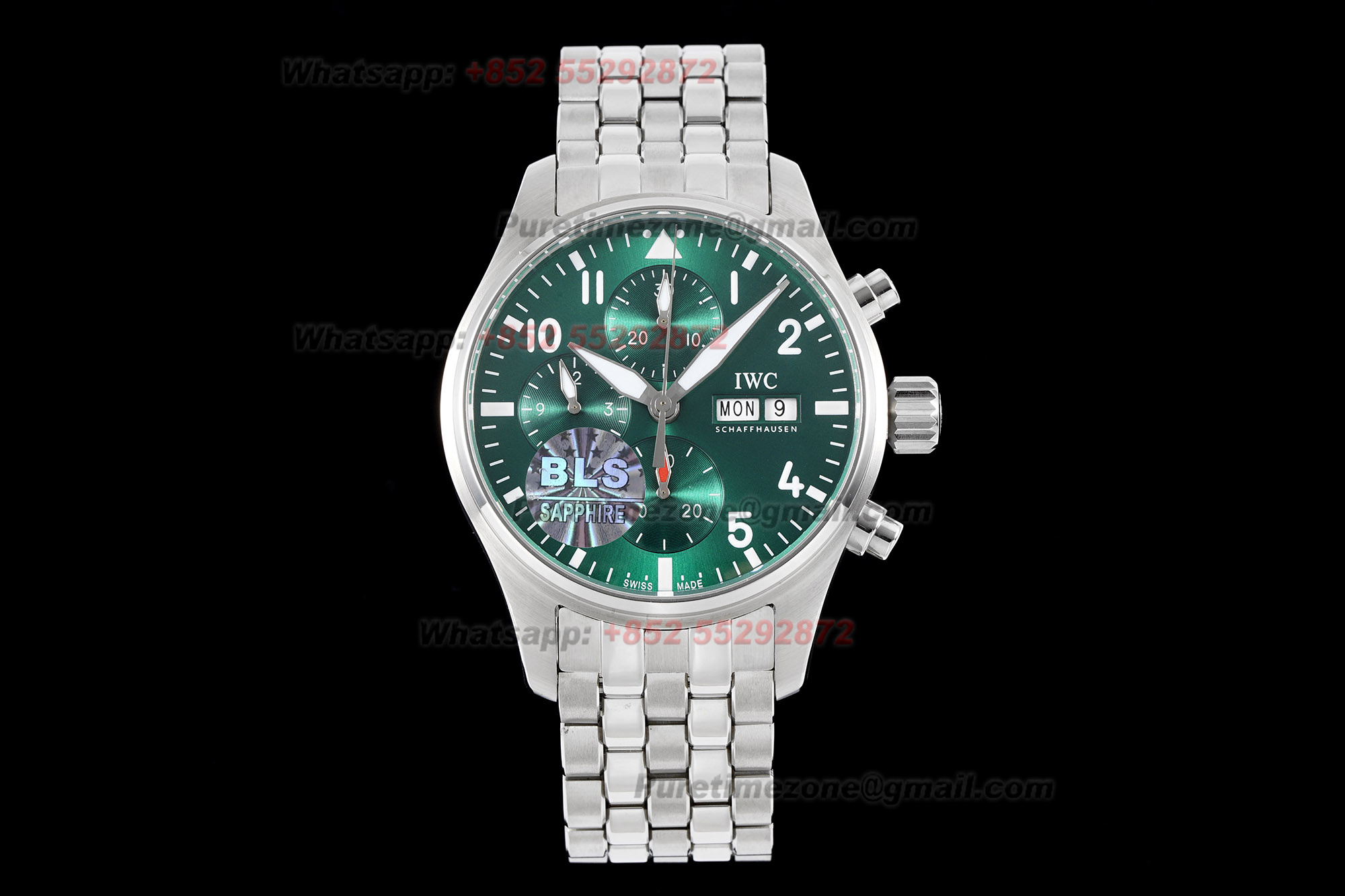 Home IWC Pilot Pilot’s Spitfire Chronograph IW388104 Automatic Mens Watch Super Clone BLSF Green Dial SS Bracelet A69835 (Extra set straps)