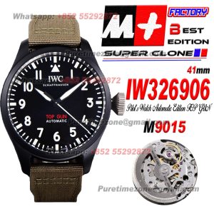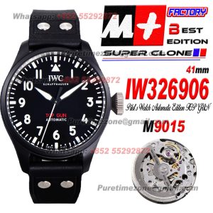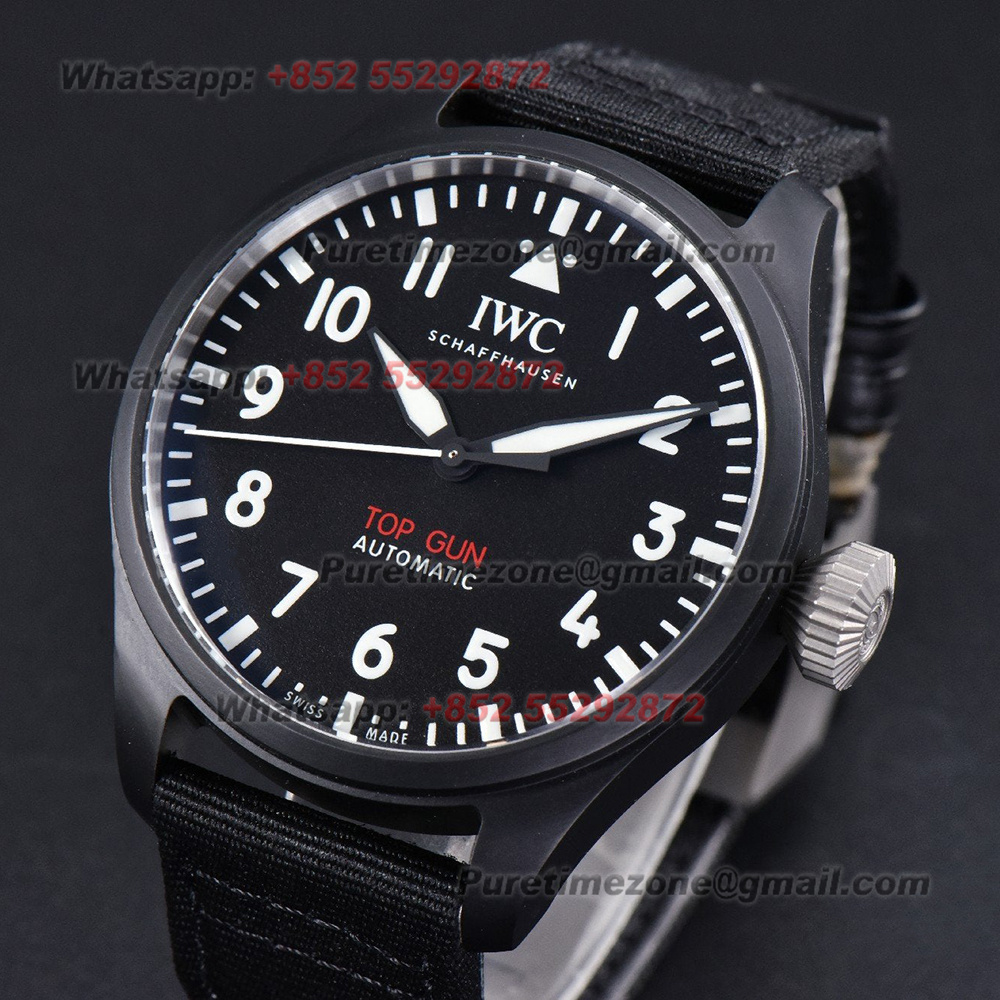 Pilot’s Top Gun Ceramic IW326906 Automatic Mens Watch Super Clone M+F Black Dial Black Nylon Strap M9015