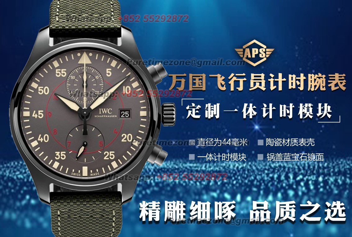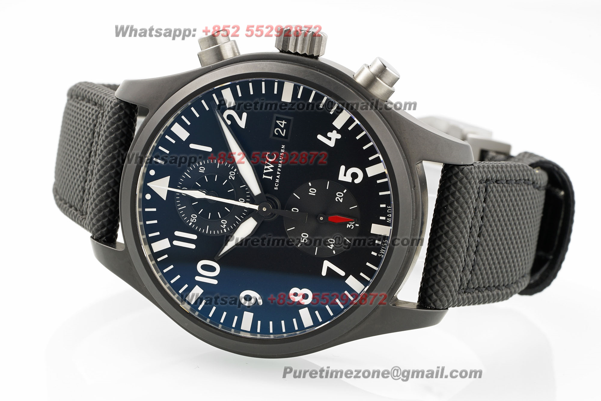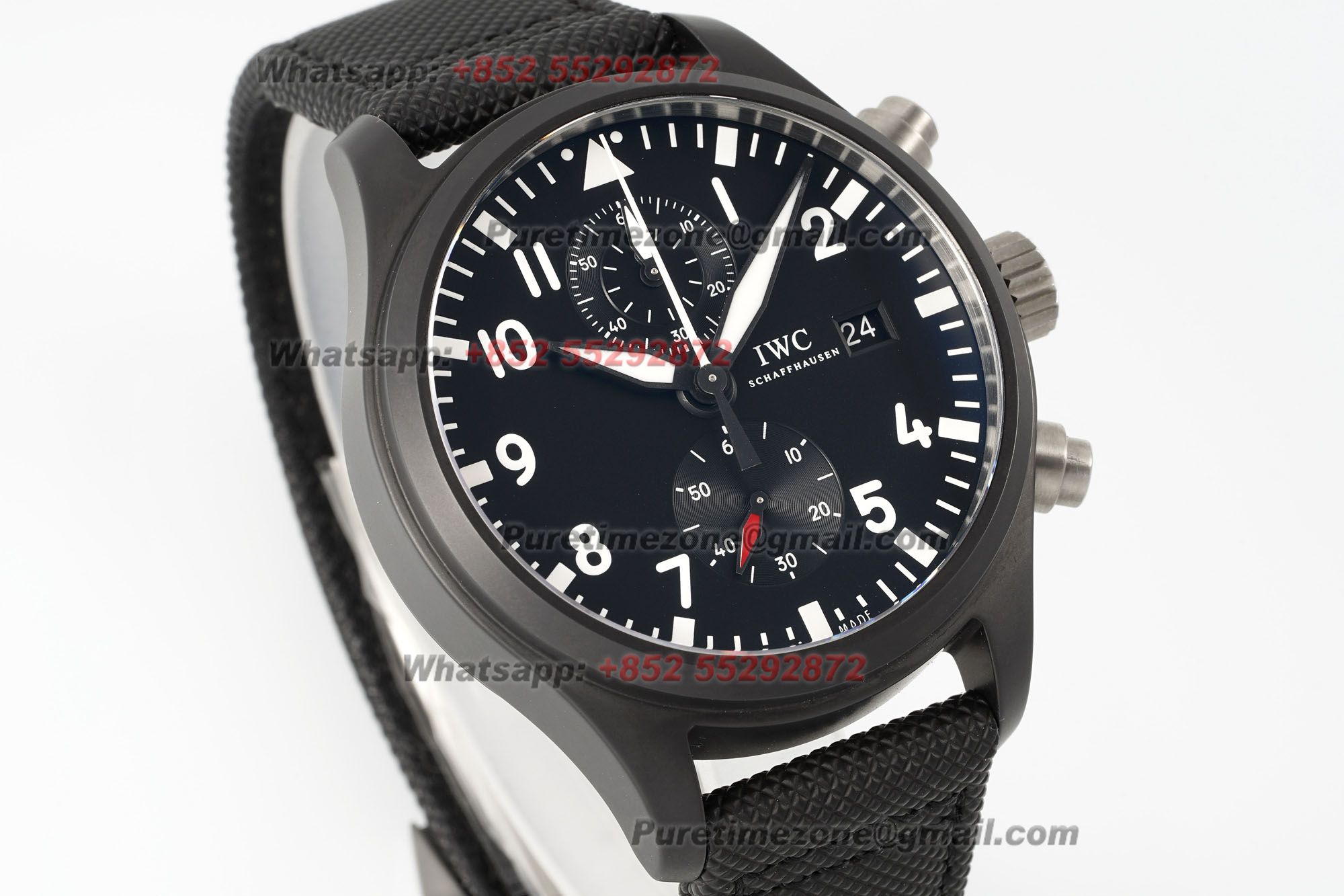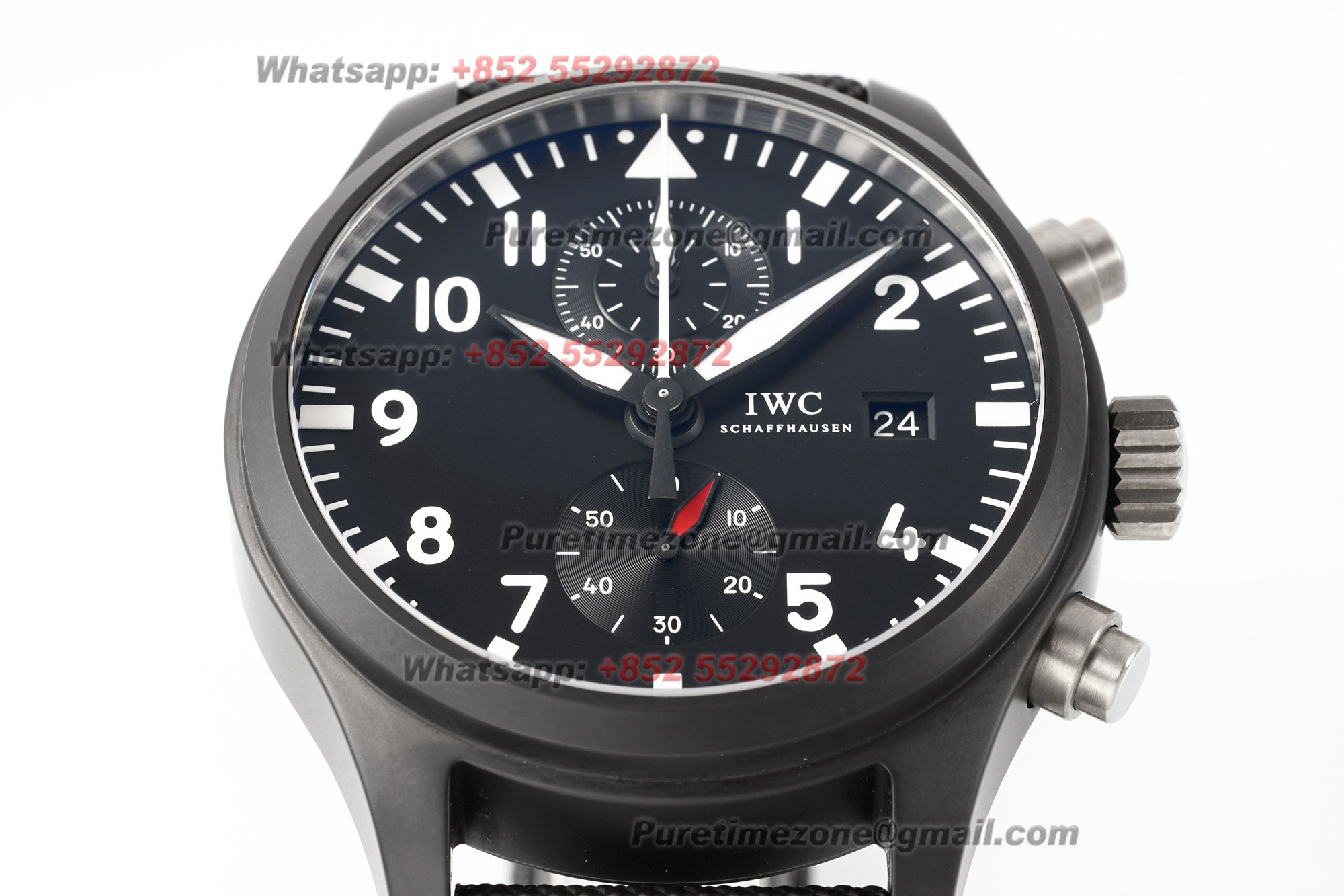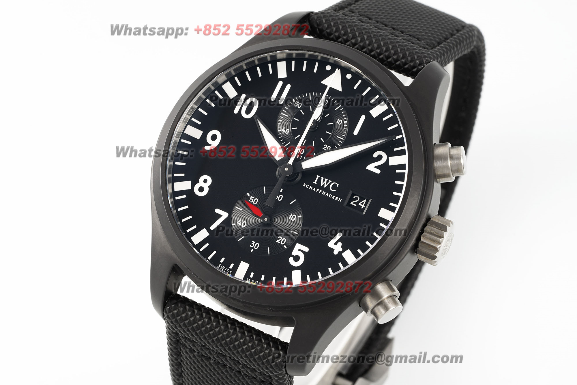 Pilot’s TOP GUN IW389001 Automatic Chronograph Mens Watch Super Clone APSF 44 Ceramics Case Black Dial Nylon Strap SA69381