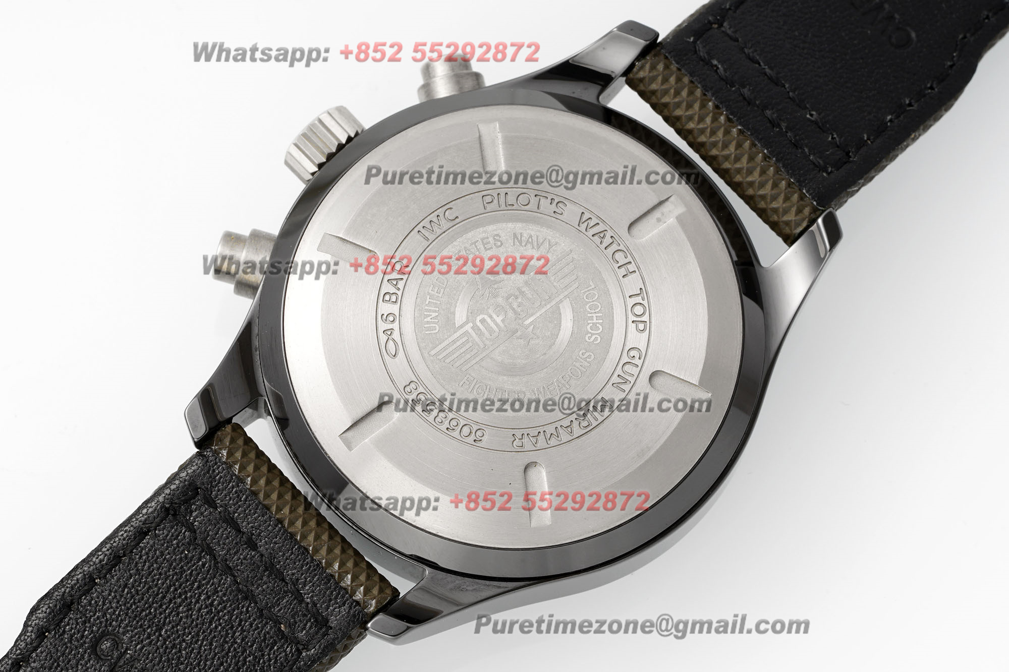 Home IWC Pilot Pilot’s TOP GUN IW389002 Automatic Chronograph Mens Watch Super Clone APSF 44 Ceramics Case Green Dial Nylon Strap SA69381