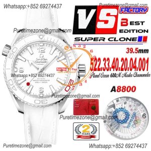 Planet Ocean 39.5mm SS A8900 Automatic Womens Watch VSF Best Ediiton White Dial Rubber Ladies 215.33.40.20.04.001