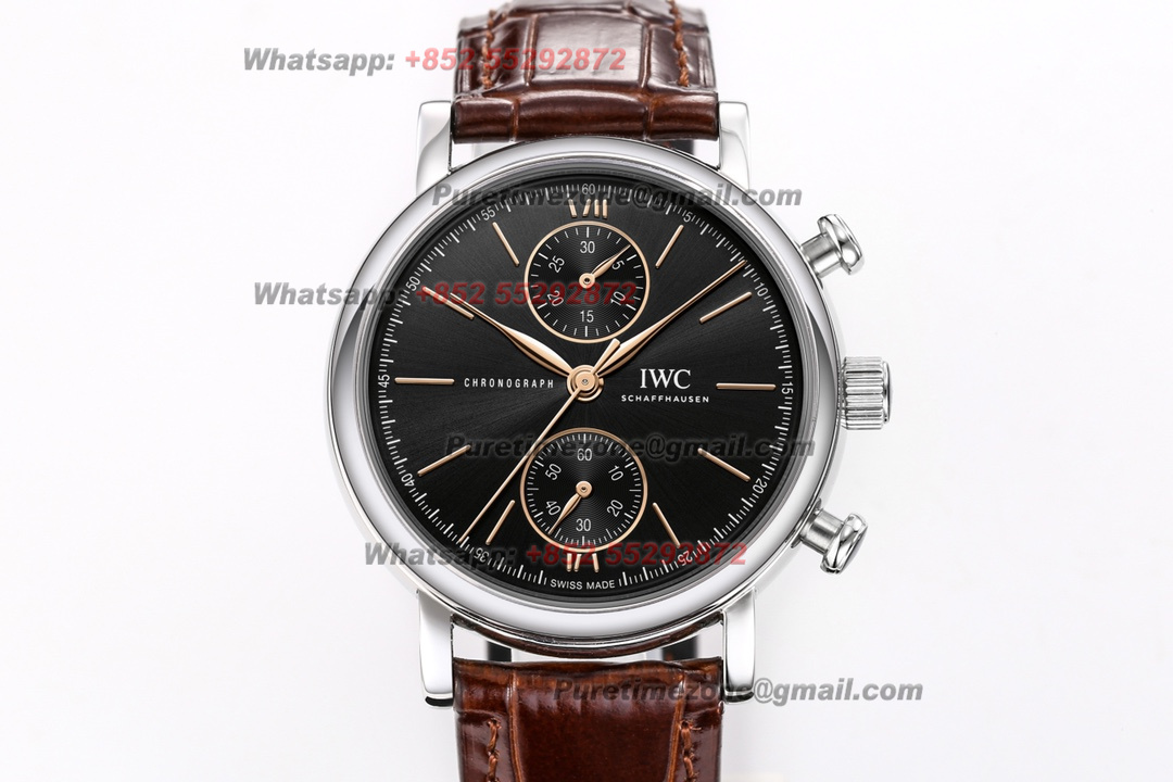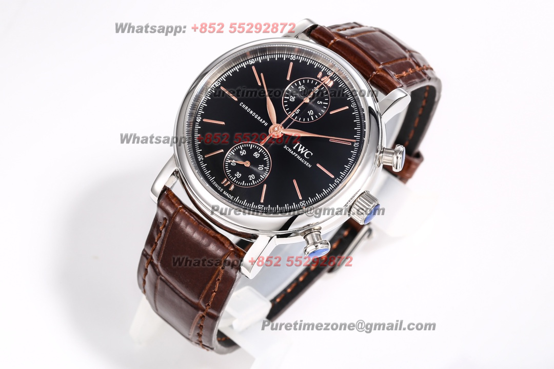 Portofino Chronograph IW391404 Automatic Unisex Womens Mens Watch Super Clone TWF 39mm Black Dial Brown Leather Strap A7750