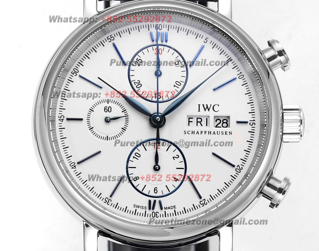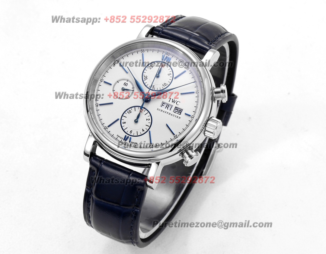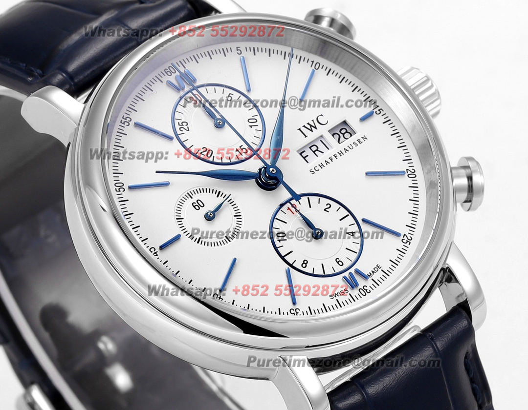 Portofino Chronograph IW391037 Automatic Mens Watch Super Clone TWF 42mm White Dial Blue Leather Strap A7750