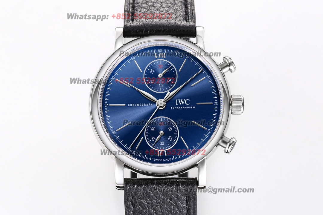 Portofino Chronograph IW391408 Automatic Unisex Womens Mens Watch Super Clone TWF 39mm Blue Dial Leather Strap A7750