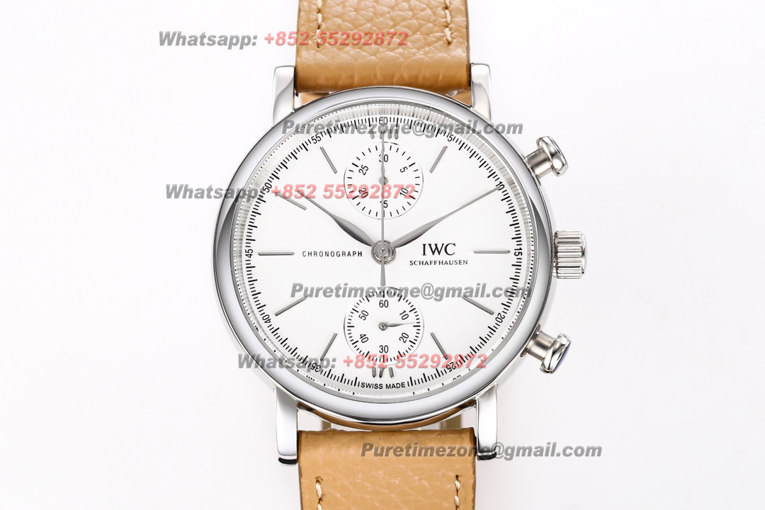 Portofino Chronograph IW391502 Automatic Unisex Womens Mens Watch Super Clone TWF 39mm White Dial Leather Strap A7750