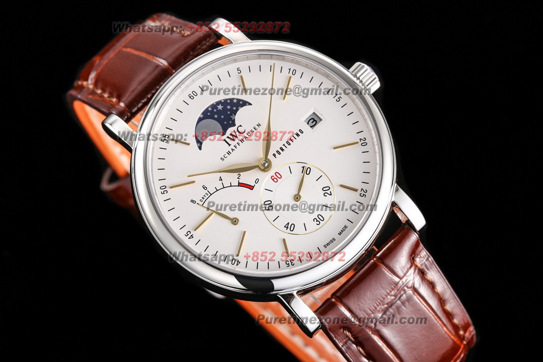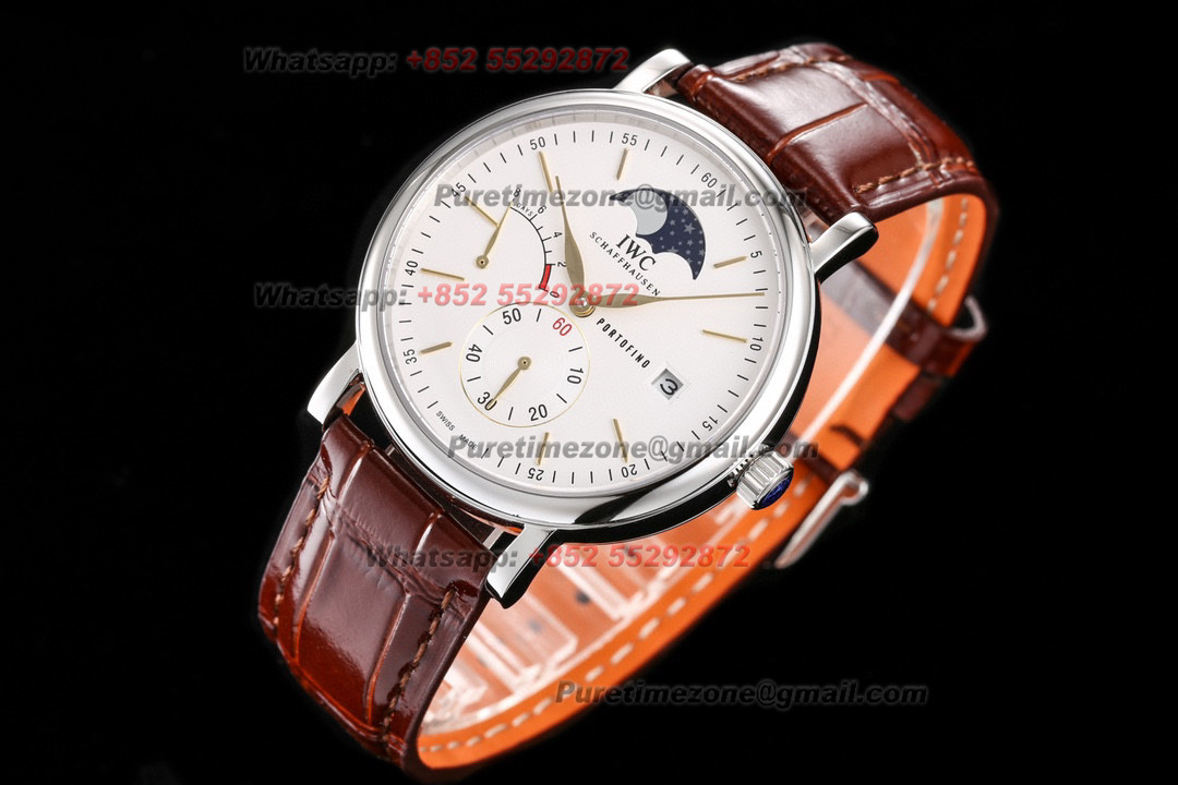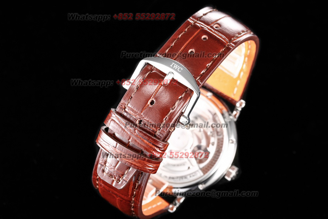 Portofino Hand-Wound Moon Phase IW516401 Mens Watch Super Cloen TWF 45mm Silver Dial Brown Leather Strap