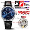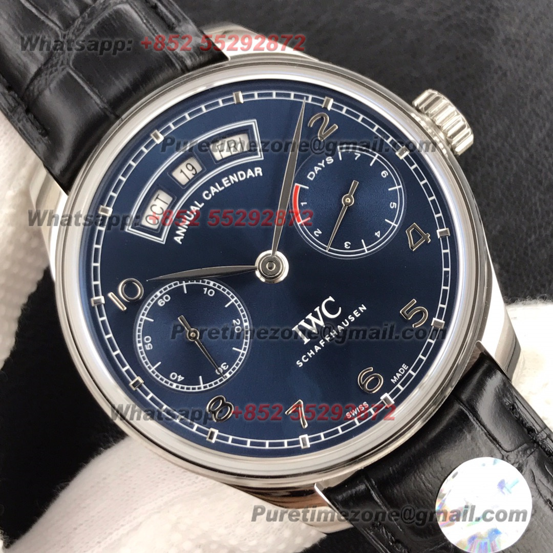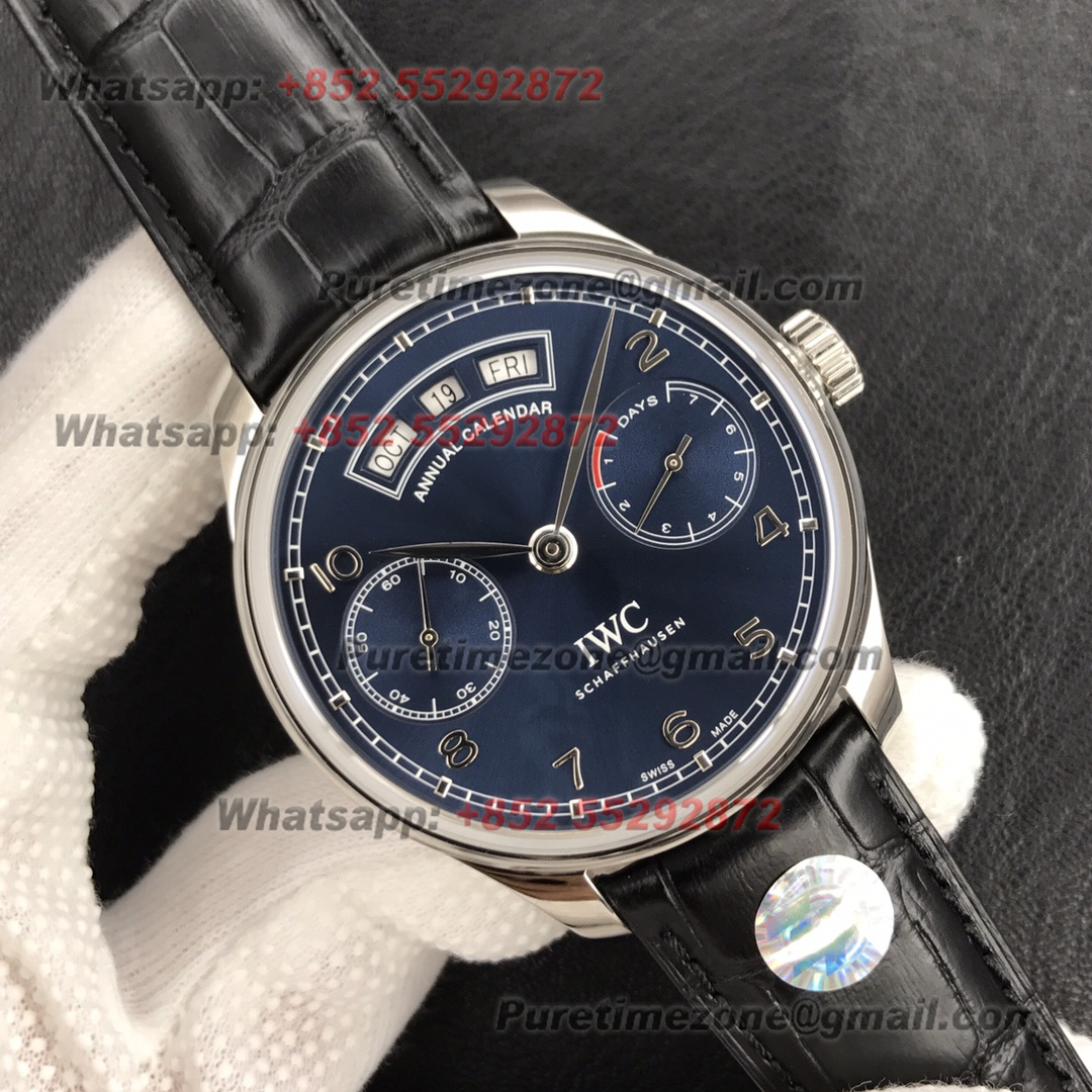 Portugieser Annual Calendar IW503502 Automatic Mens Watch Super Clone ZF 44mm Blue Dial Black Leather Strap A52850